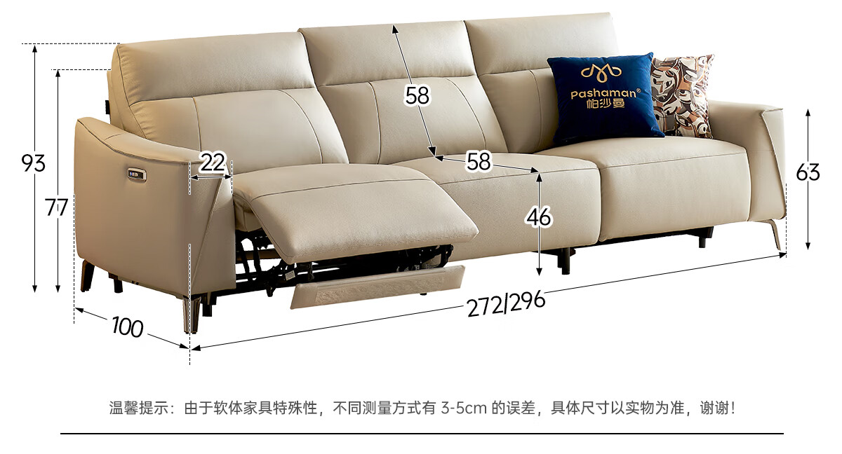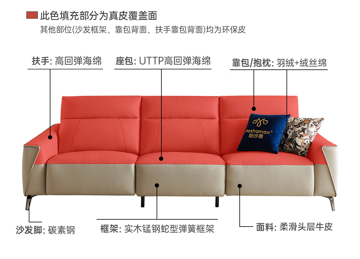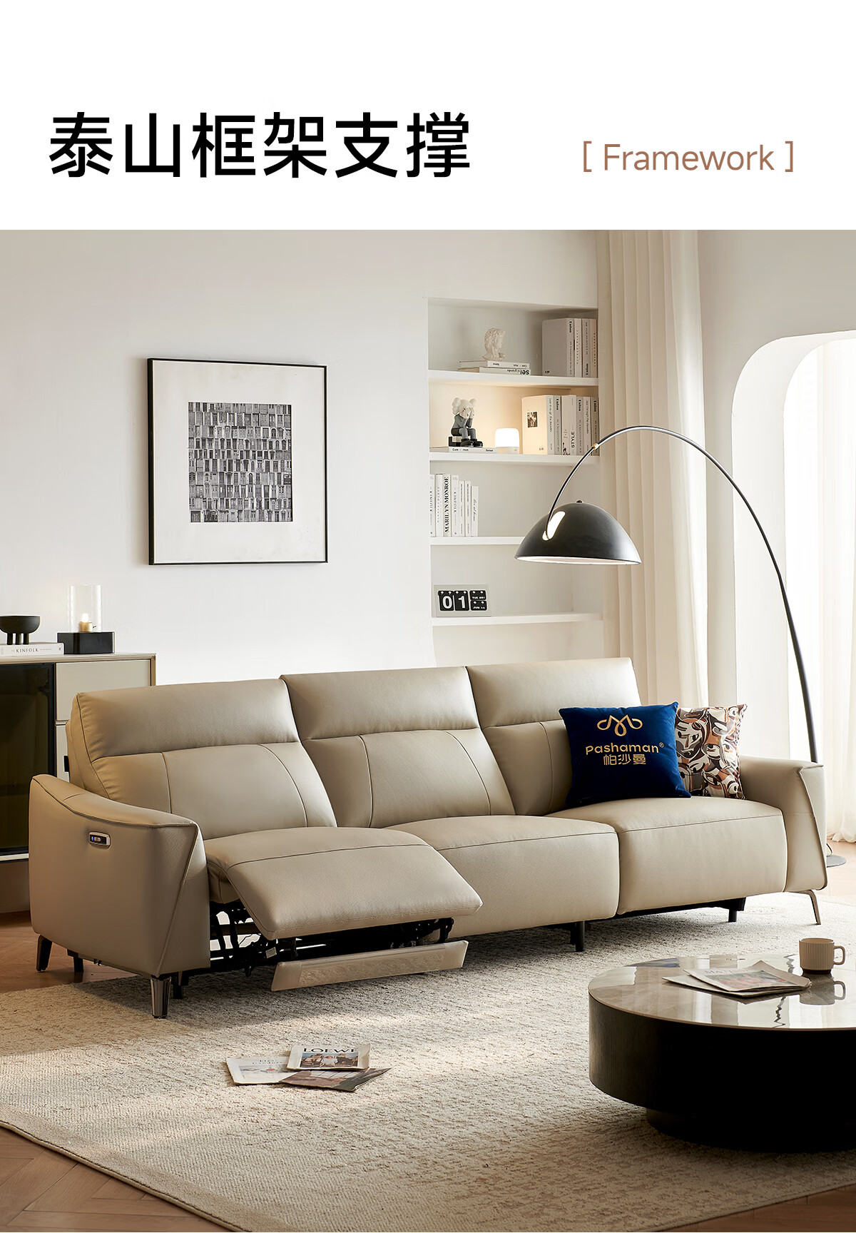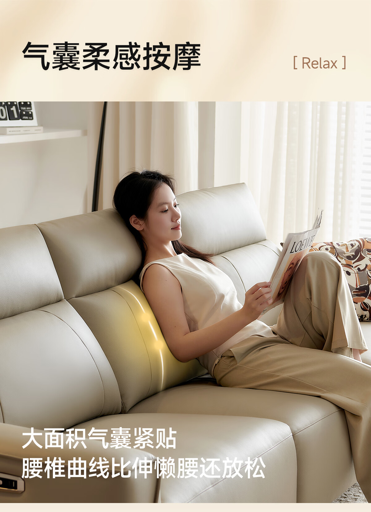 帕沙曼首款腰背按摩功能皮艺沙发2025新款客厅家用现代电动沙发GF512-C 坐感王【双电动+双气囊按摩+语音】3.48米双人位 柔滑头层牛皮MX(高回弹无粉乳棉)