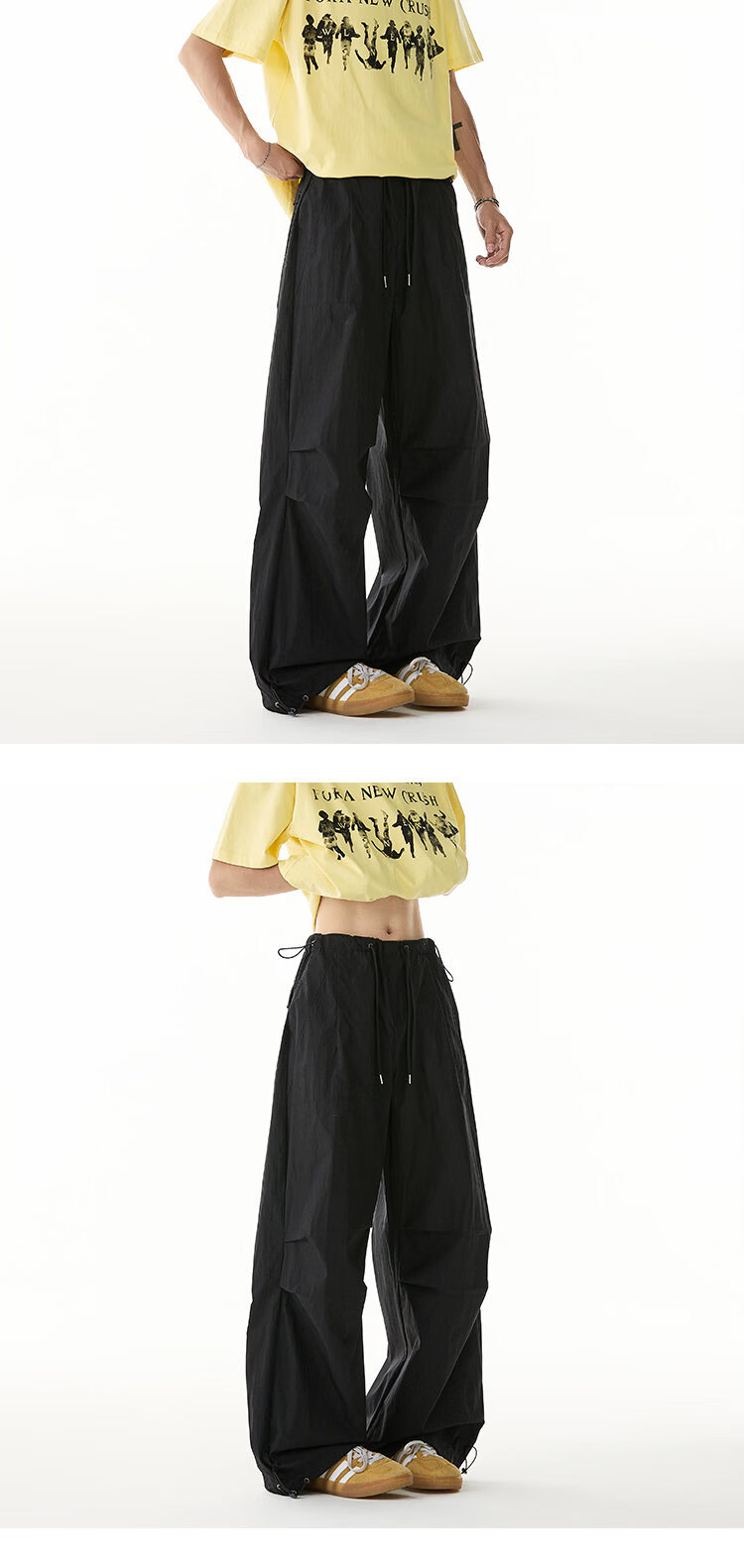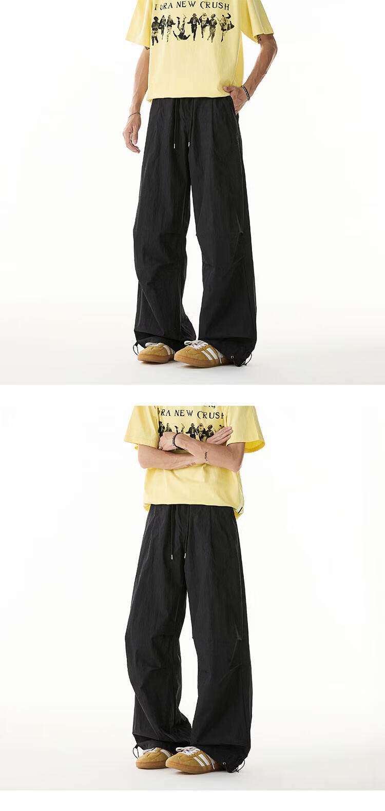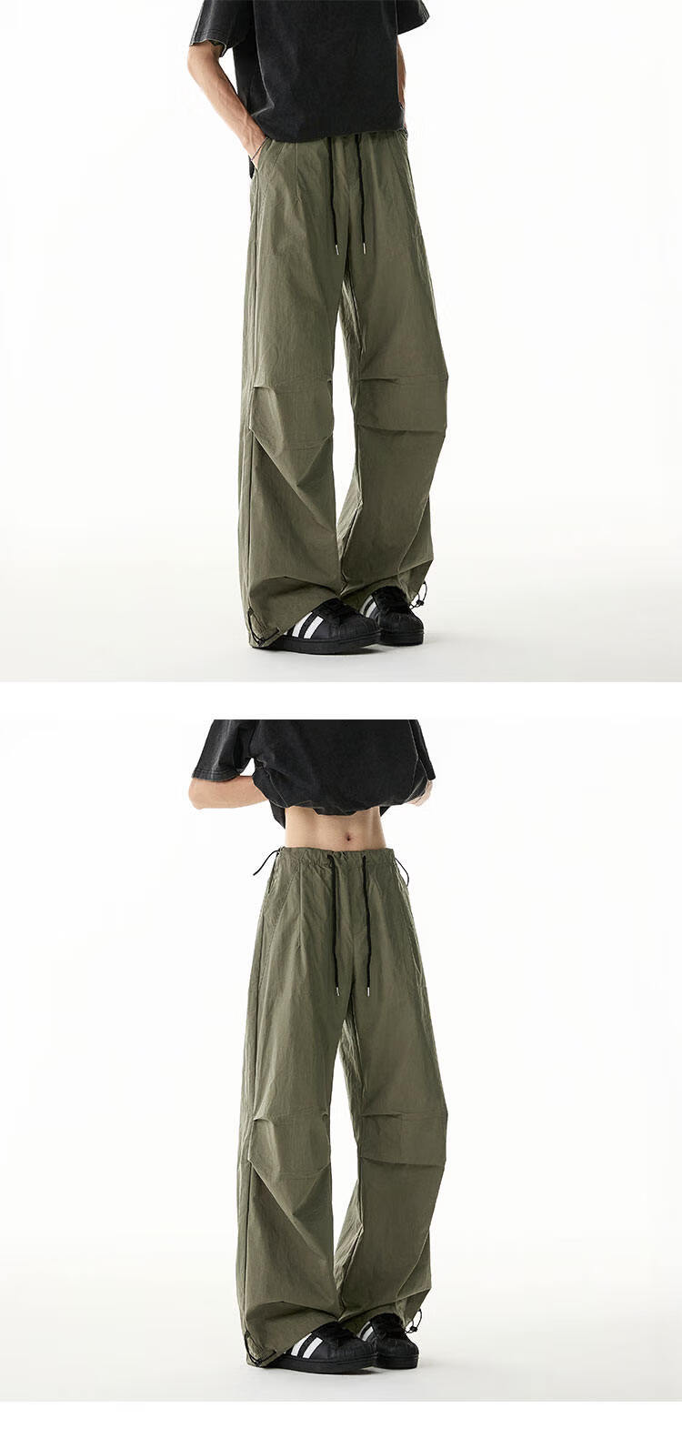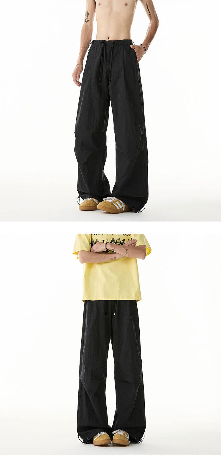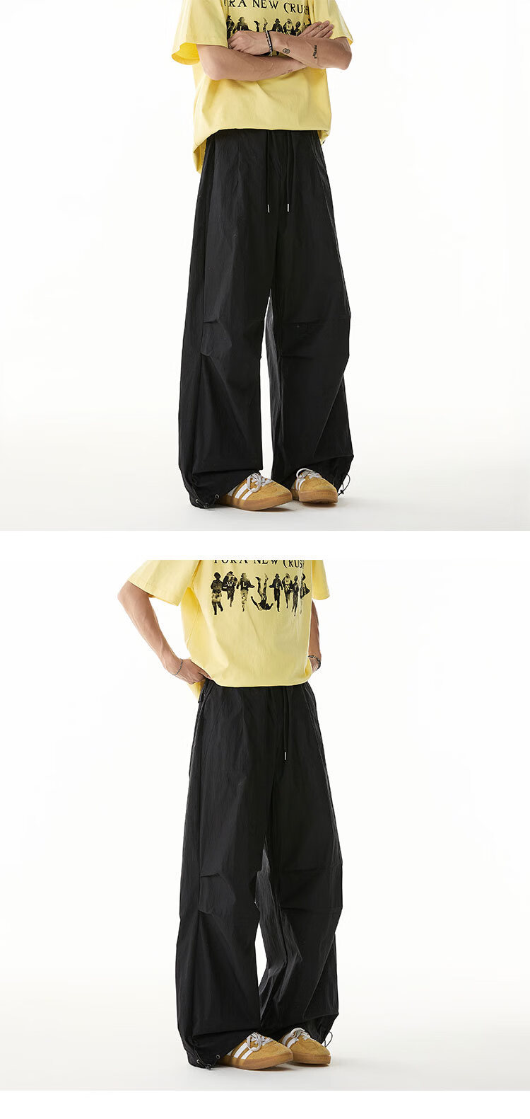 NEW OR MODE美式皱褶速干运动伞兵裤子男夏季薄款休闲宽松运动工装直筒长裤子 黑色【高品质】 M 【建议90-110斤】