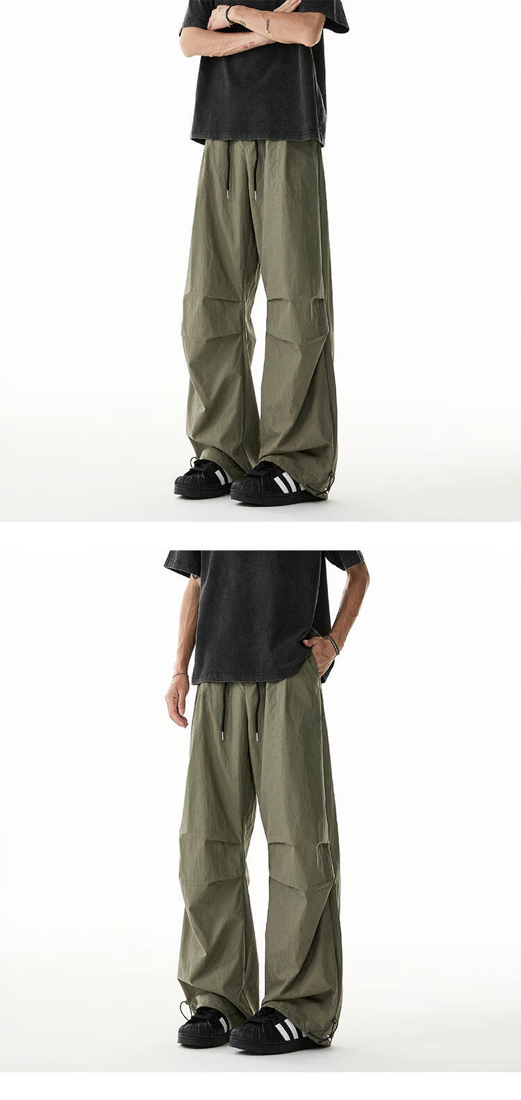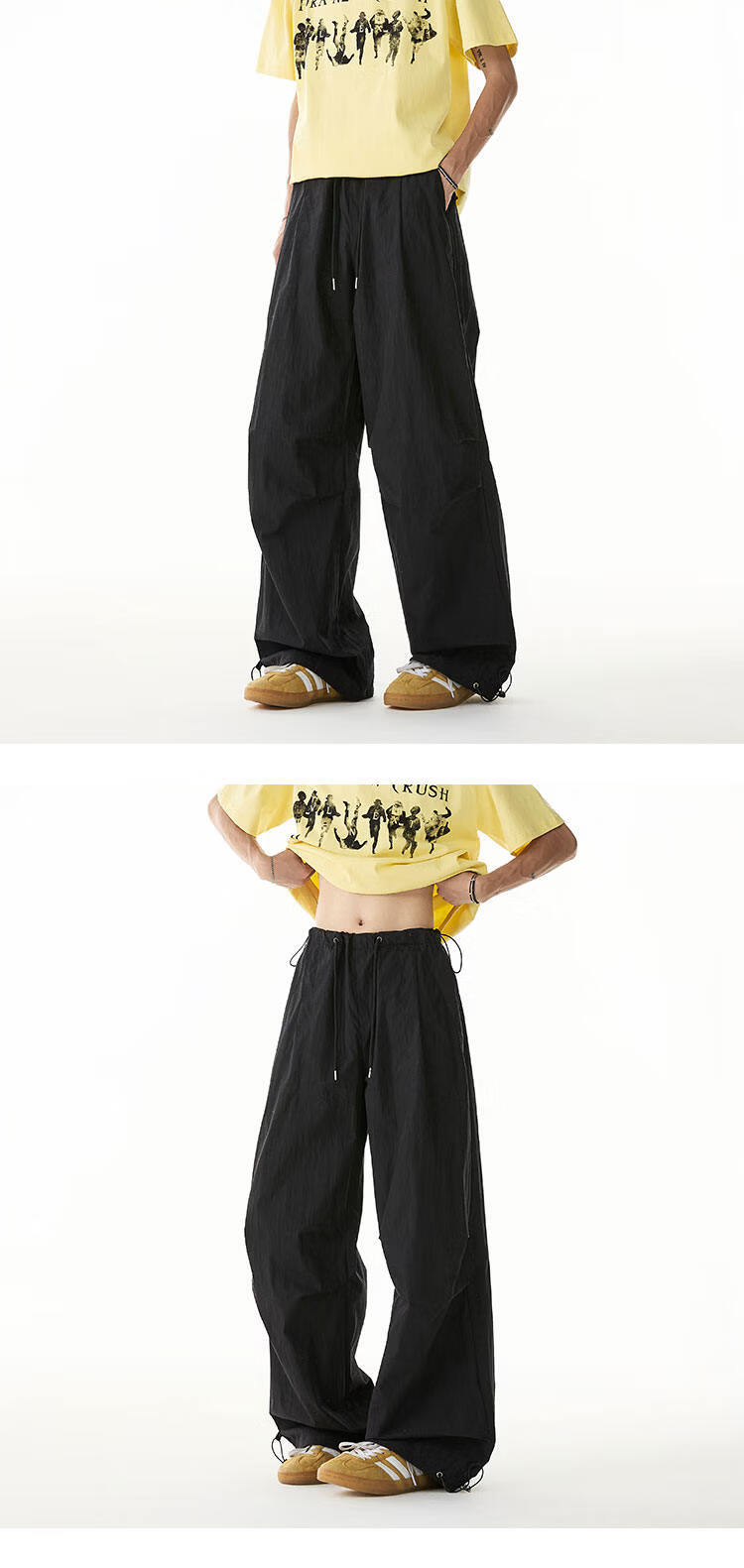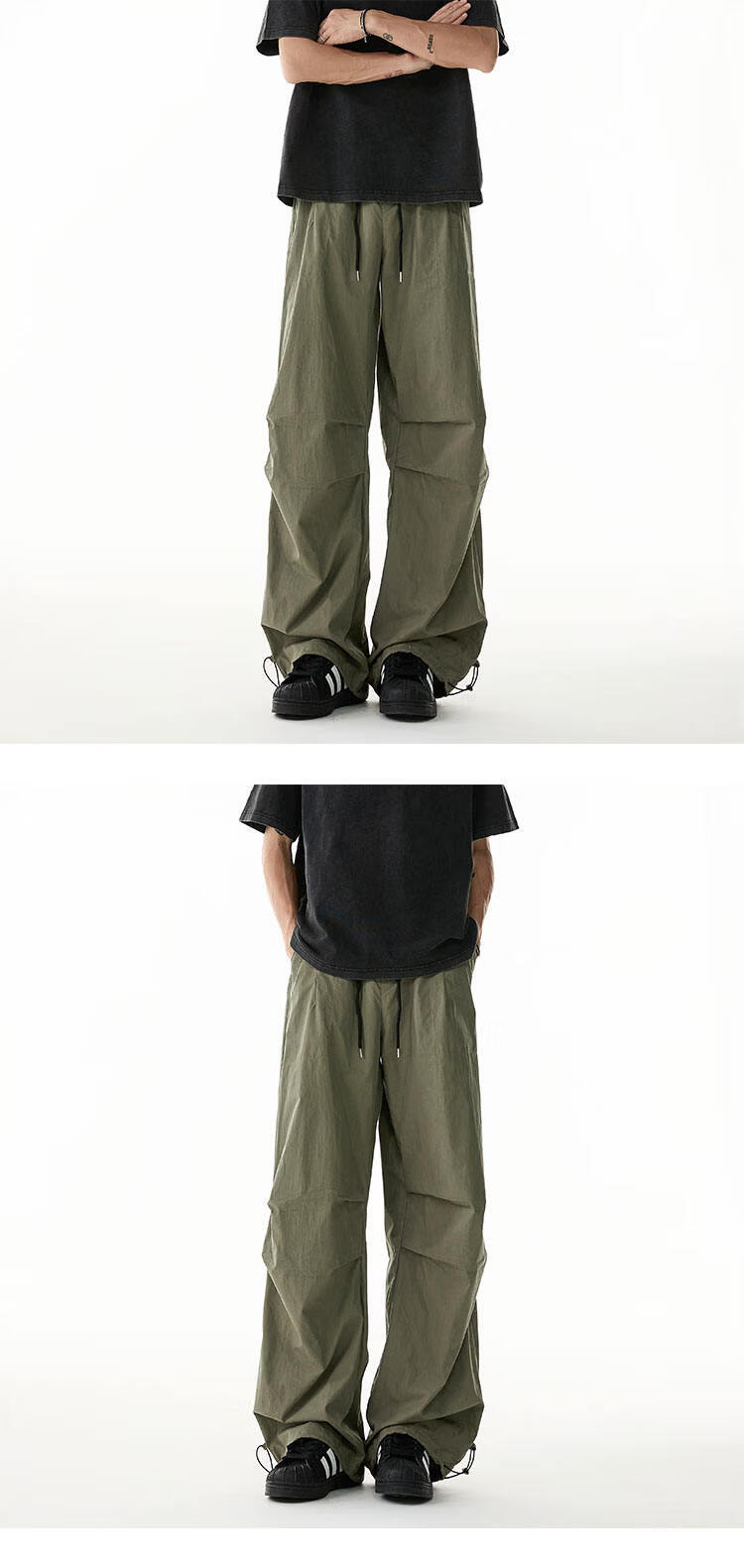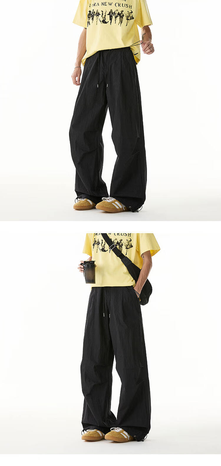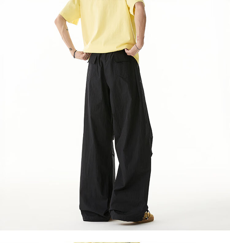 NEW OR MODE美式皱褶速干运动伞兵裤子男夏季薄款休闲宽松运动工装直筒长裤子 黑色【高品质】 M 【建议90-110斤】