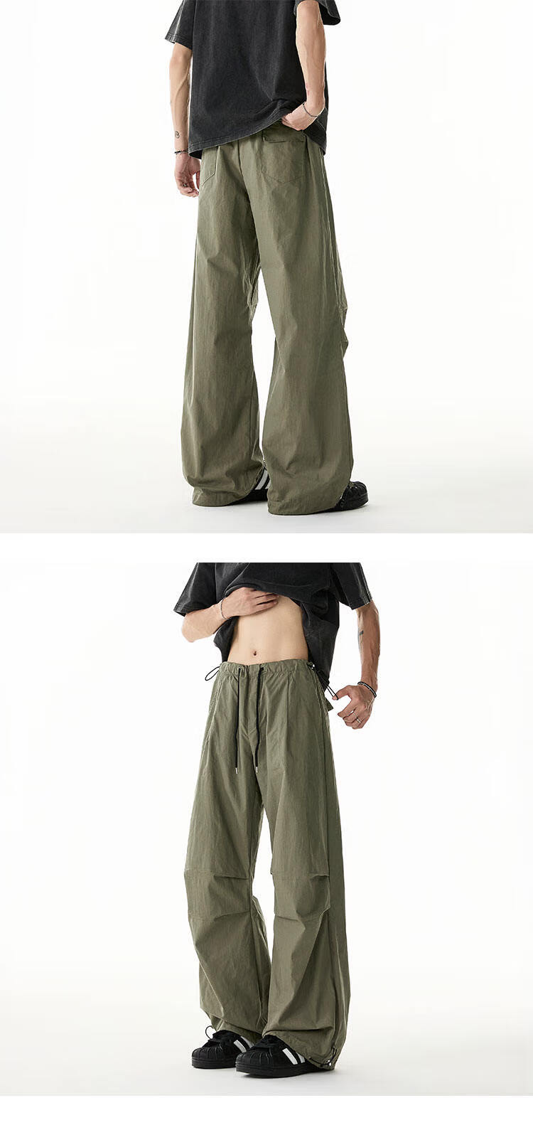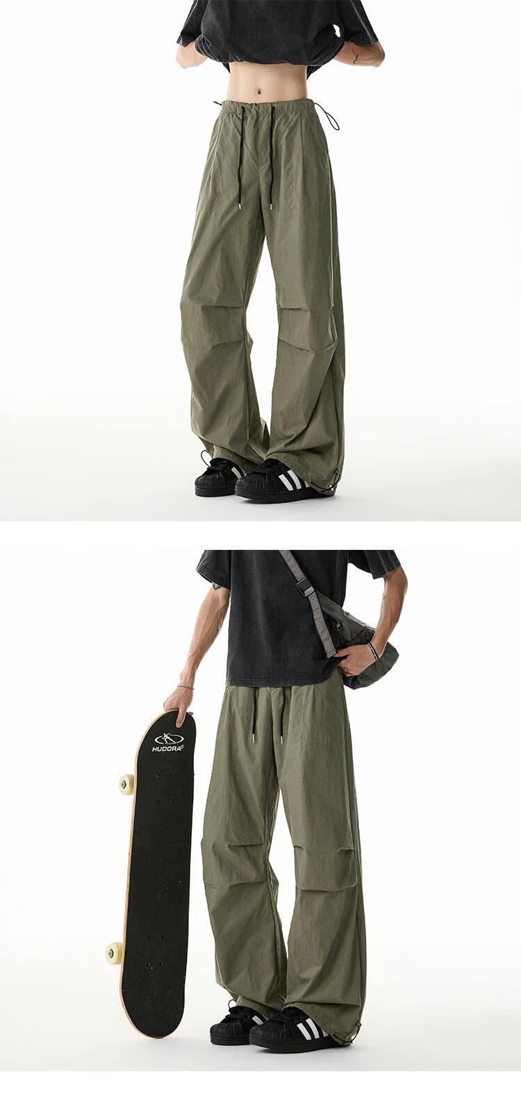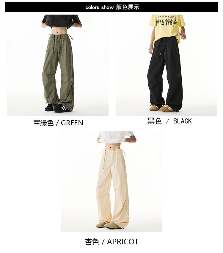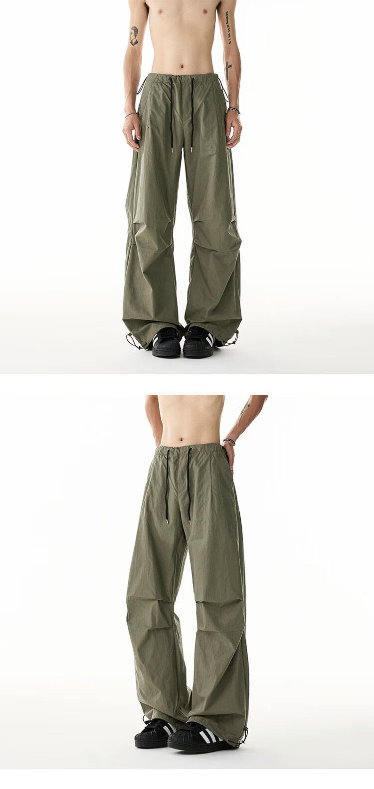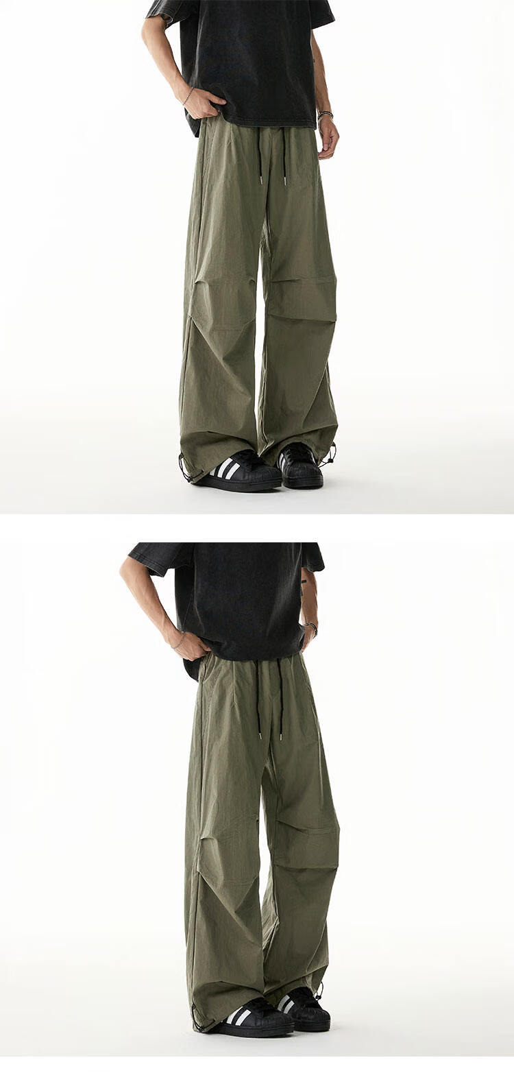 NEW OR MODE美式皱褶速干运动伞兵裤子男夏季薄款休闲宽松运动工装直筒长裤子 黑色【高品质】 M 【建议90-110斤】