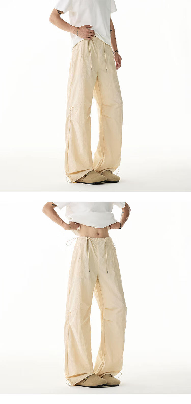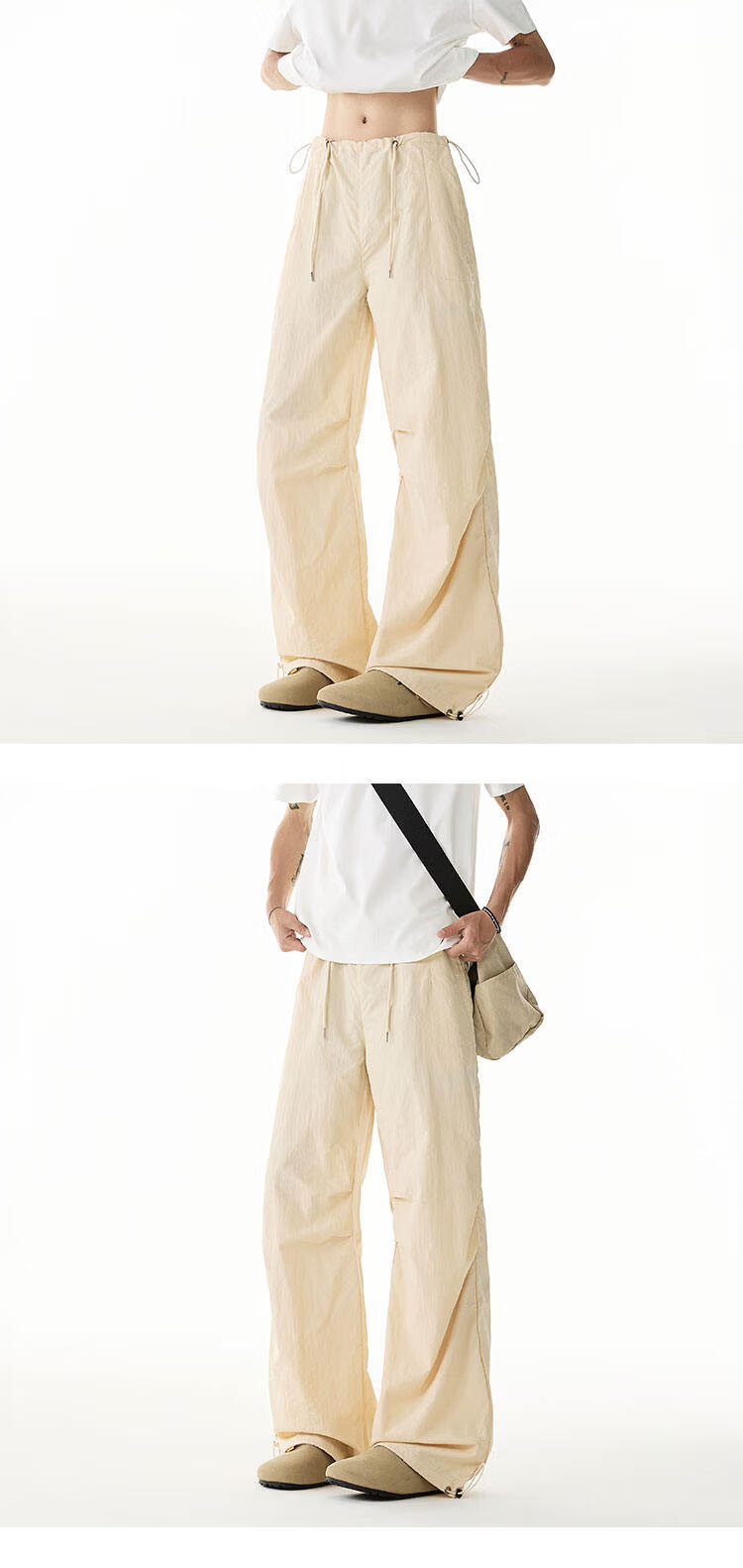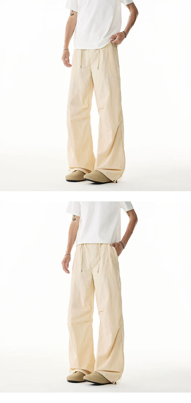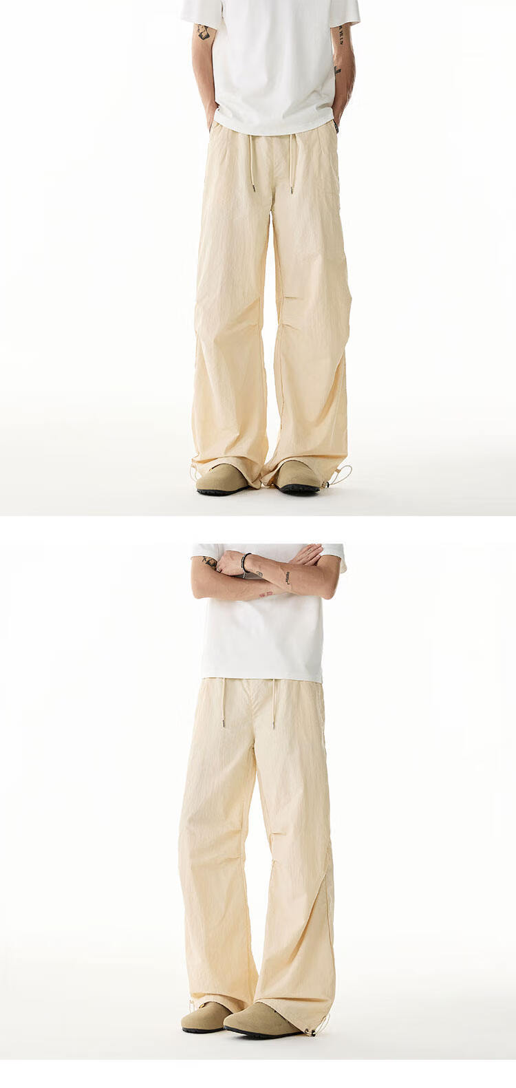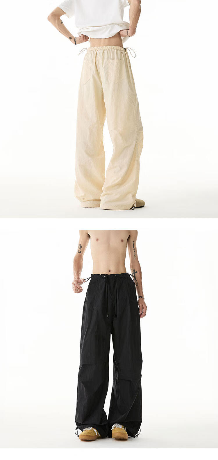 NEW OR MODE美式皱褶速干运动伞兵裤子男夏季薄款休闲宽松运动工装直筒长裤子 黑色【高品质】 M 【建议90-110斤】