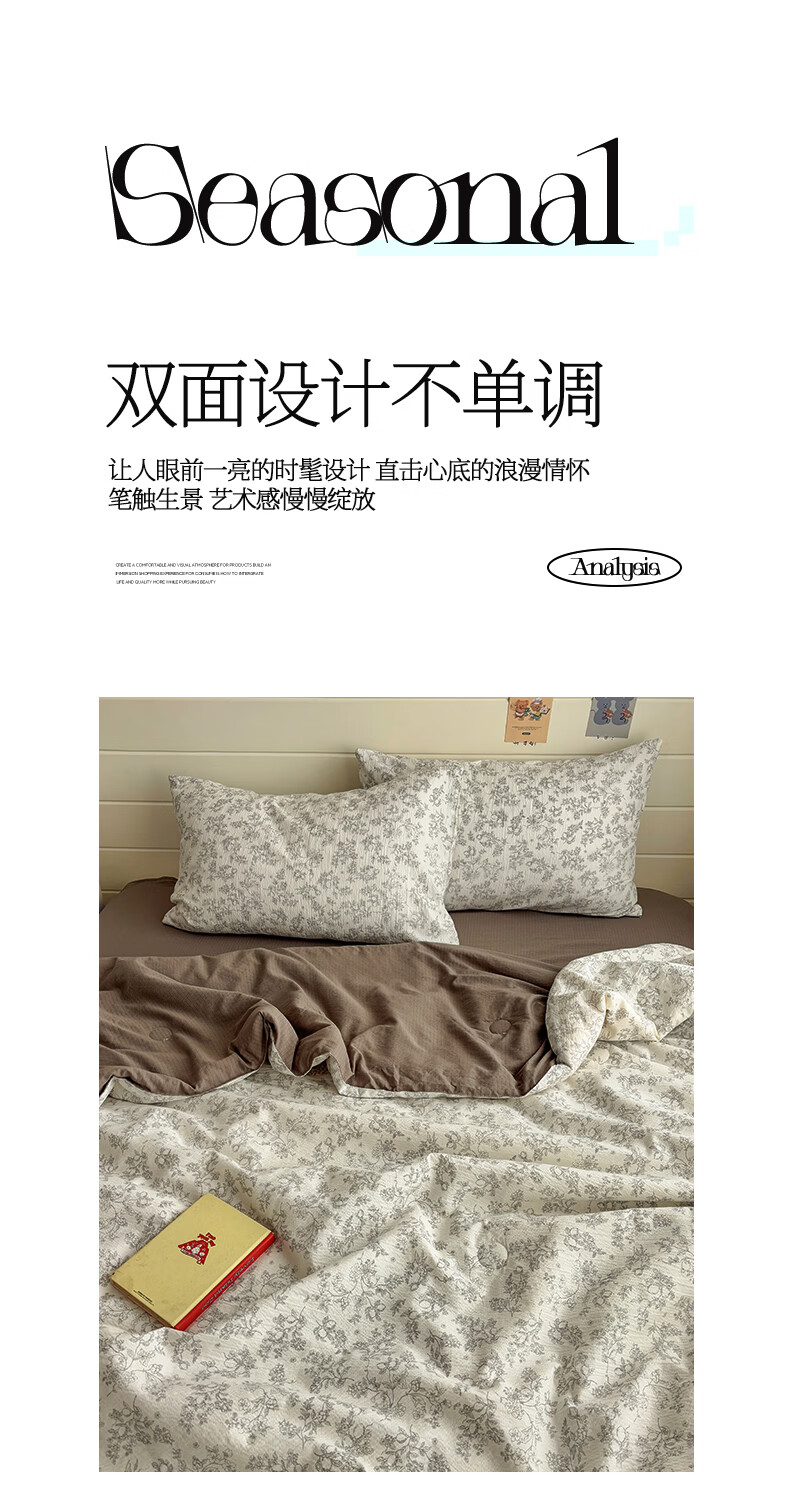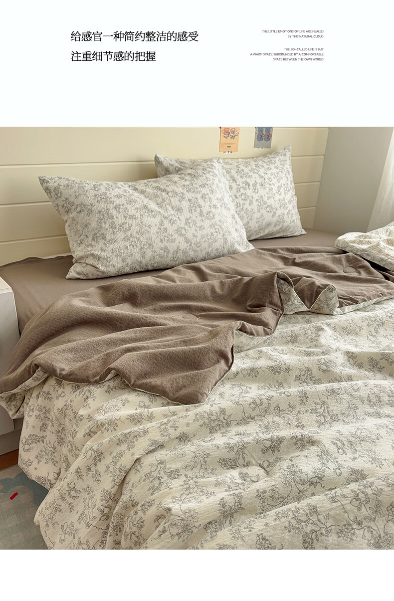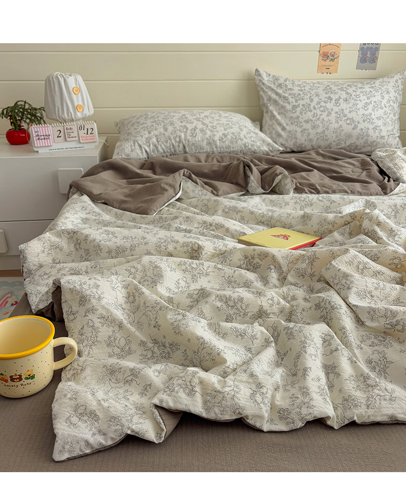 无印良品双层纱大豆夏被空调被1.5x2米夏季单双人夏凉被四件套可机洗裸睡 石榴花【亲肤双层纱 大豆填充】 150cmx200cm单夏被