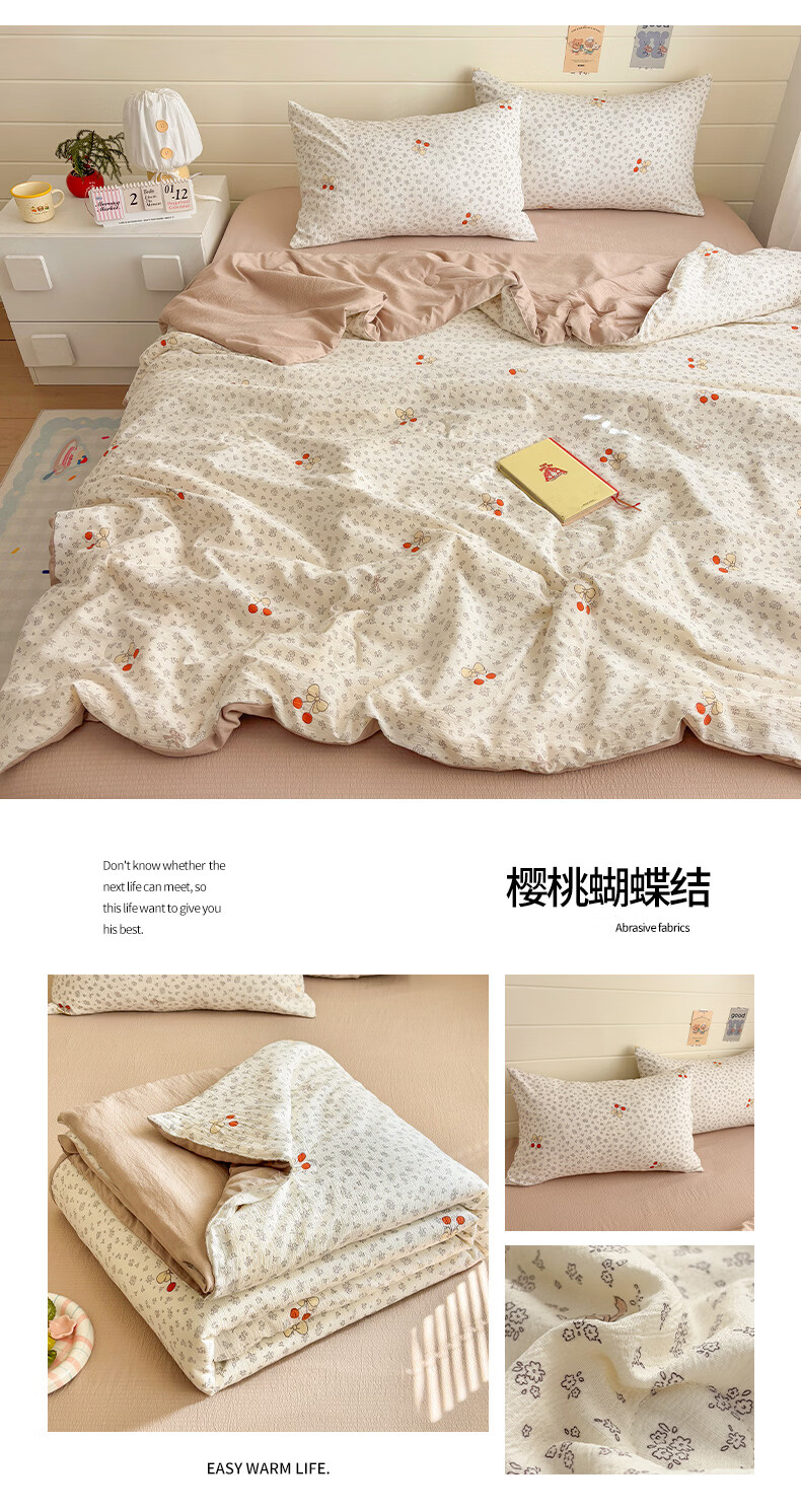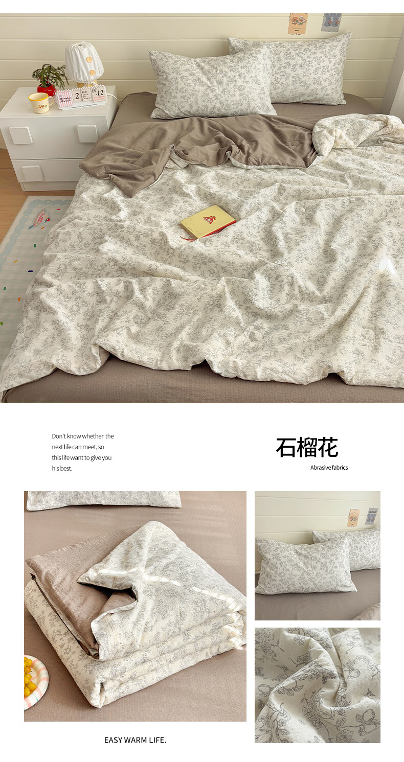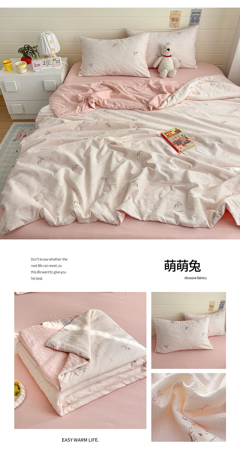 无印良品双层纱大豆夏被空调被1.5x2米夏季单双人夏凉被四件套可机洗裸睡 石榴花【亲肤双层纱 大豆填充】 150cmx200cm单夏被