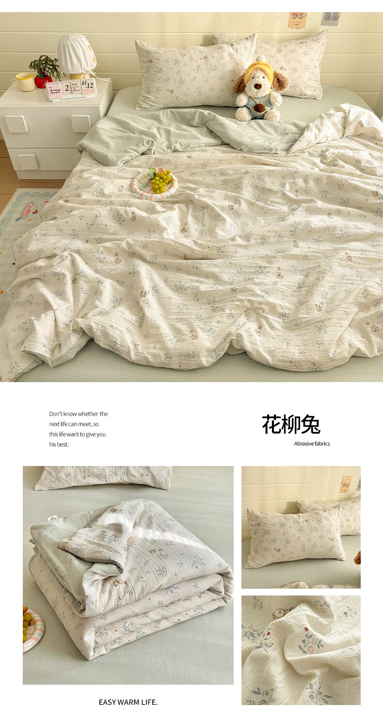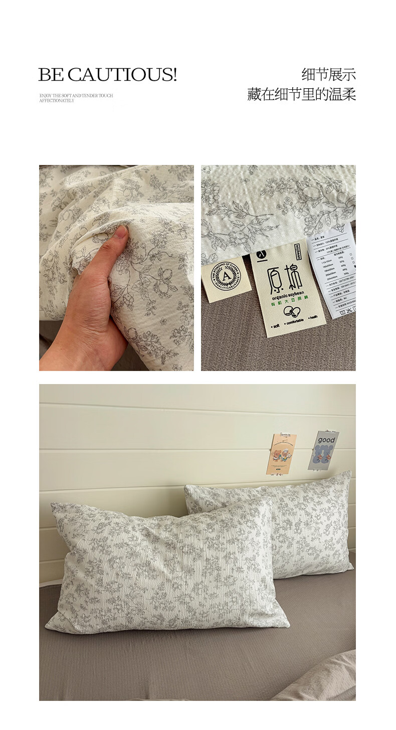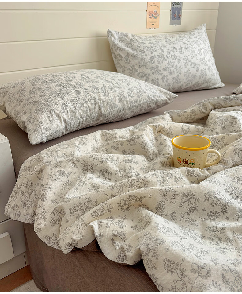 无印良品全棉床品四件套纯棉100%小清新花卉风单双人四季通用可裸睡三件套 苏屿【全棉面料 清新印花】 1.8m 床单款 被套200*230cm