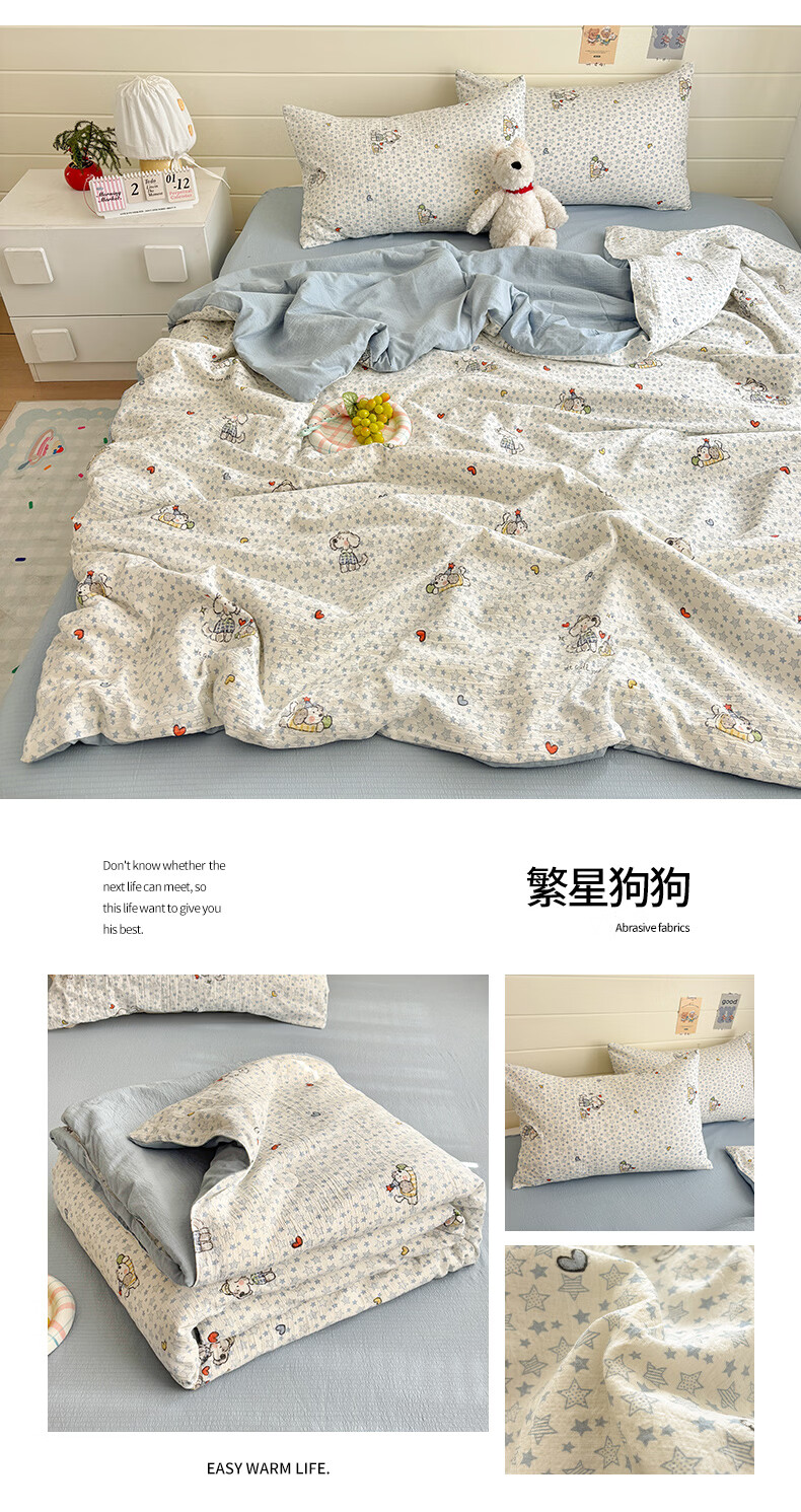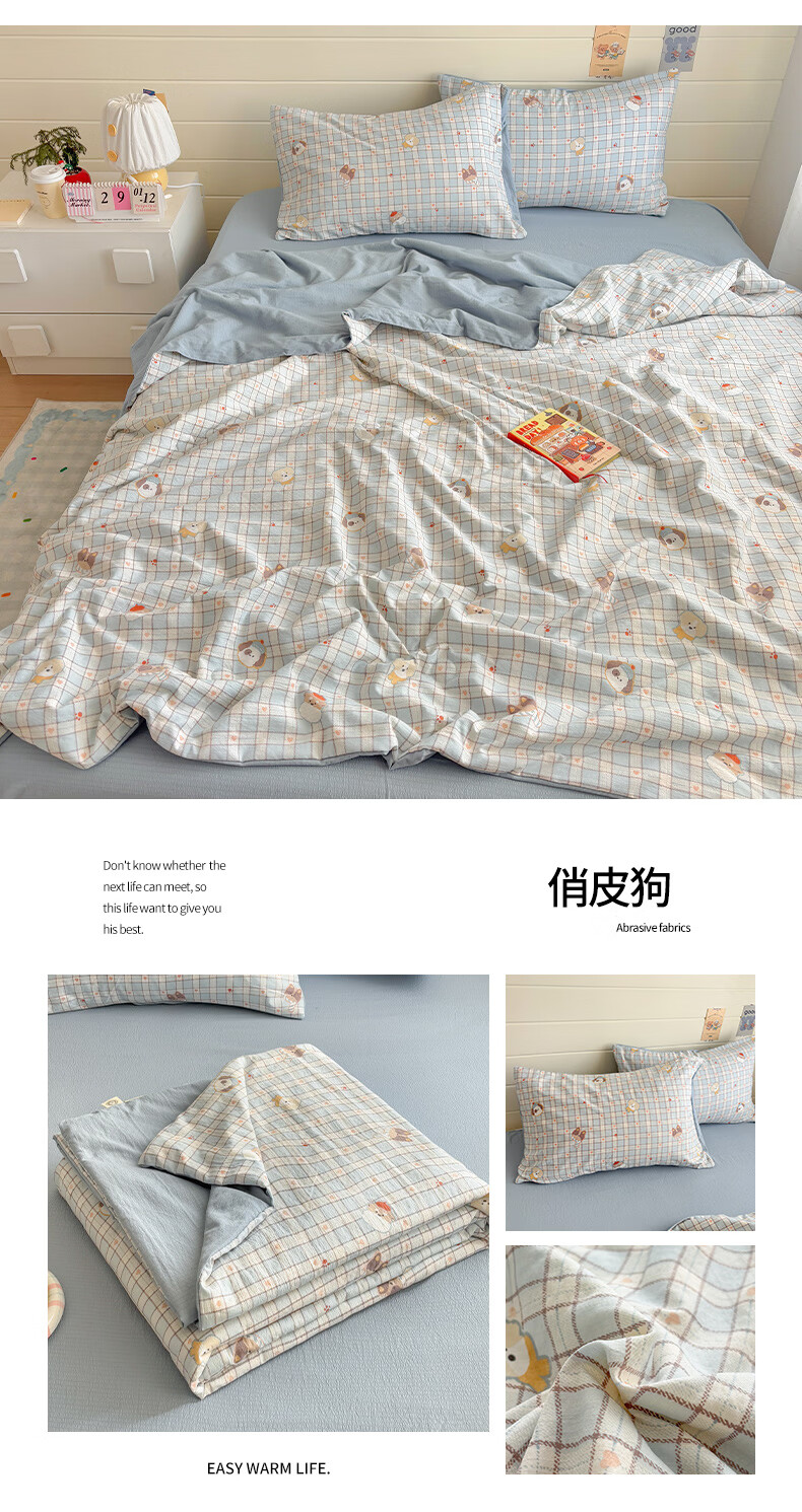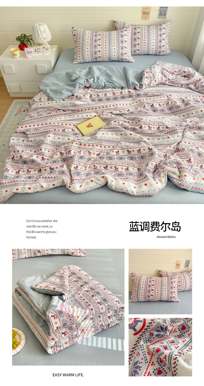 无印良品全棉床品四件套纯棉100%小清新花卉风单双人四季通用可裸睡三件套 苏屿【全棉面料 清新印花】 1.8m 床单款 被套200*230cm