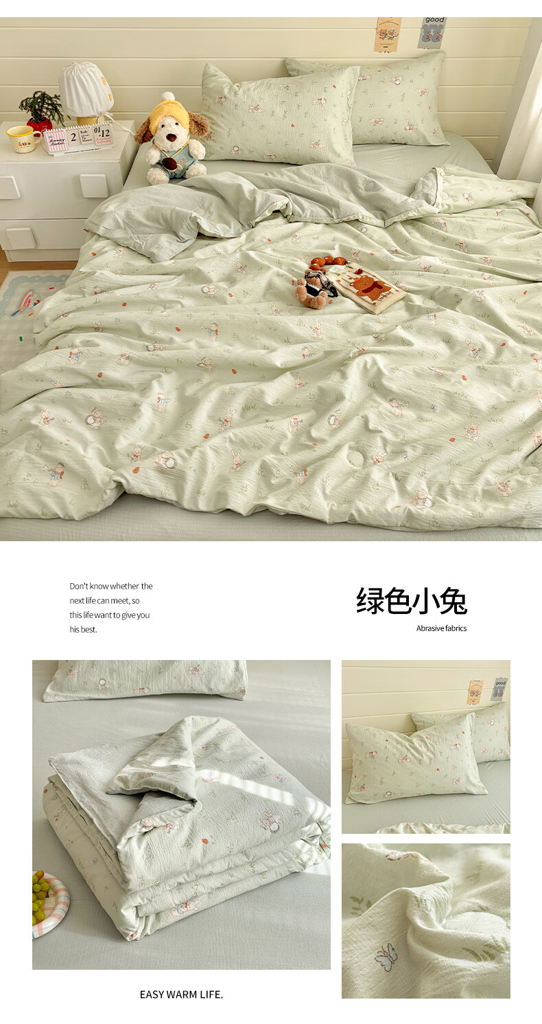 苏萱2026新款热卖水洗冰丝夏被四件套夏季夏凉被空调被可机水洗单双人 亚丁绿+冰川灰 单人夏被-150*200cm