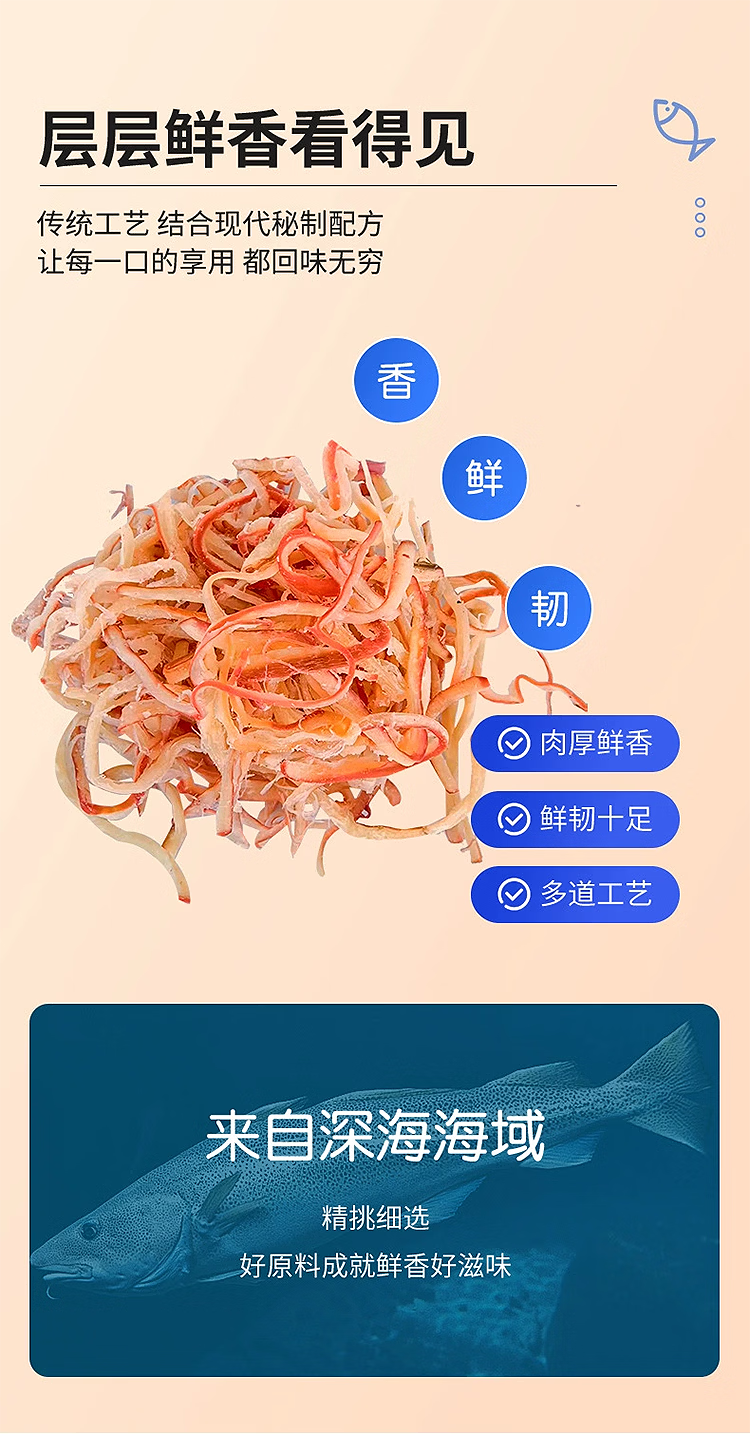手撕鱿鱼条手撕鱿鱼丝海味零食干货开袋即食小吃高蛋白儿童休闲 100g*2 鱿鱼条+鱿鱼丝