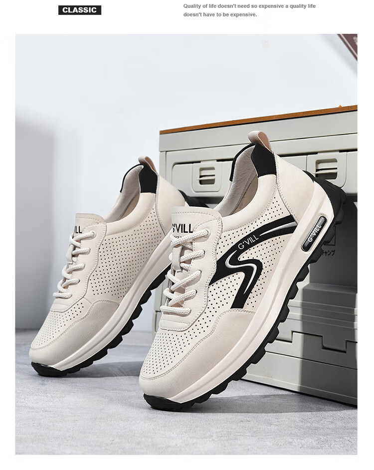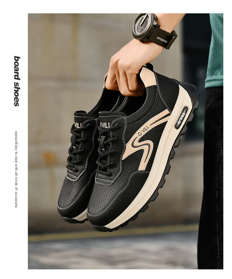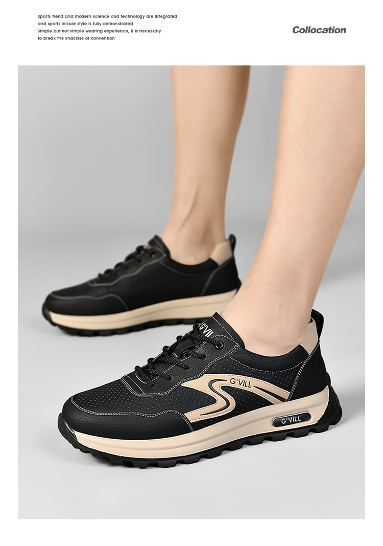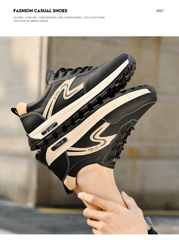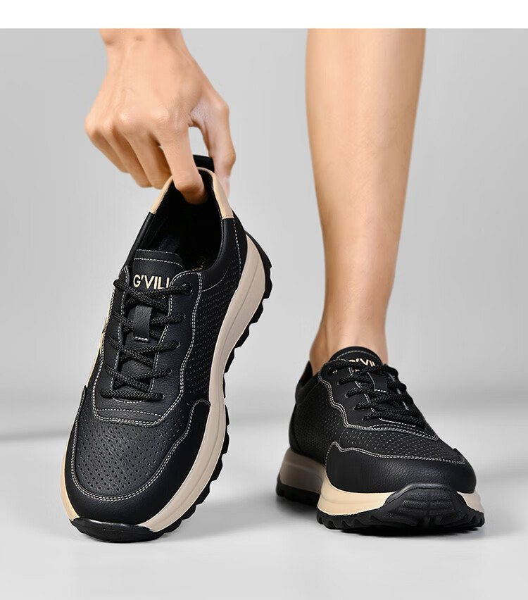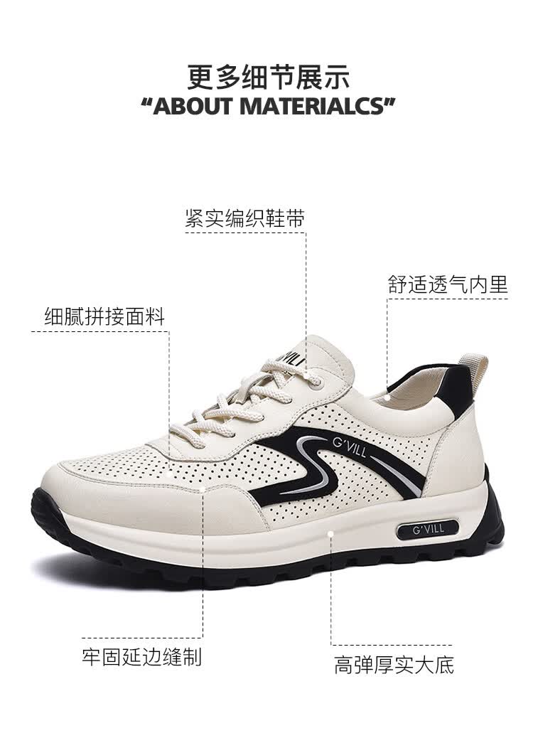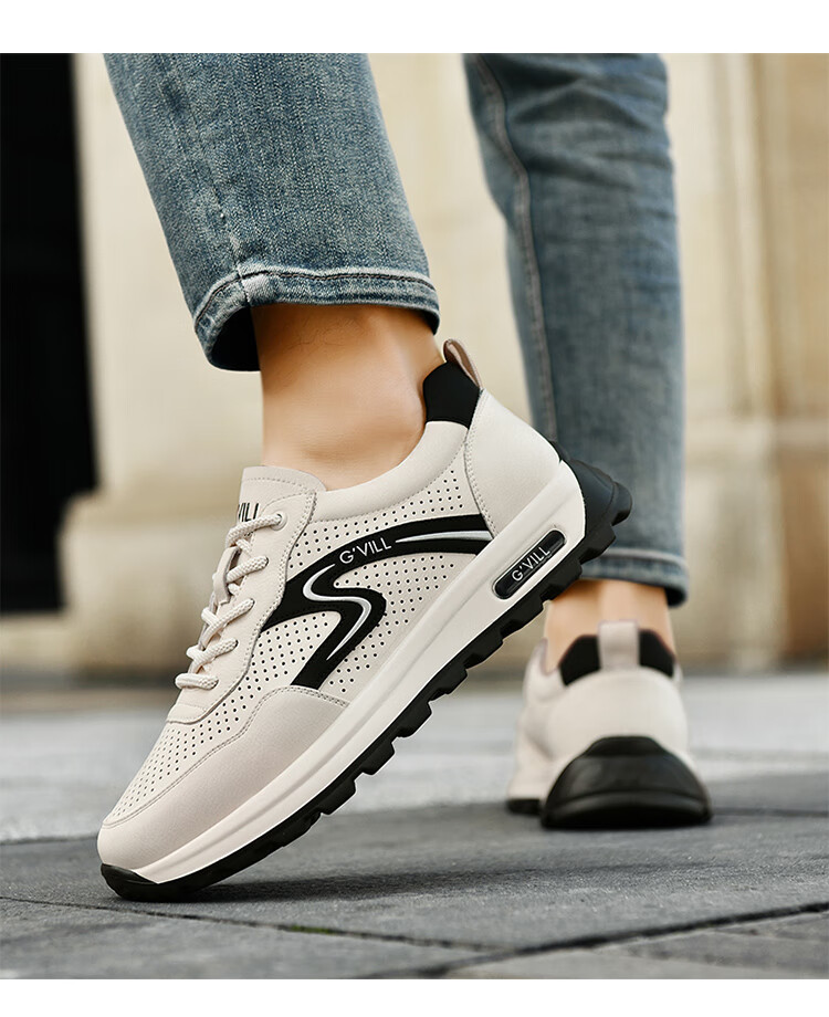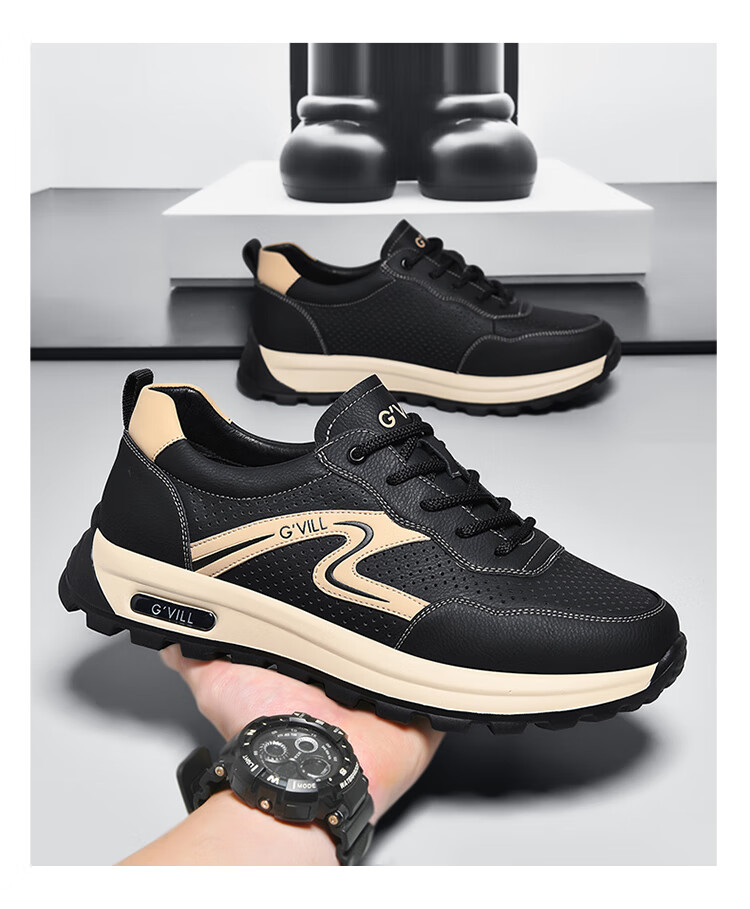 贵之步新款百搭2026男士夏季镂空运动鞋打孔透气厚底防滑百搭休闲健步鞋 黑杏[镂空透气] G1705 42 (皮鞋码)