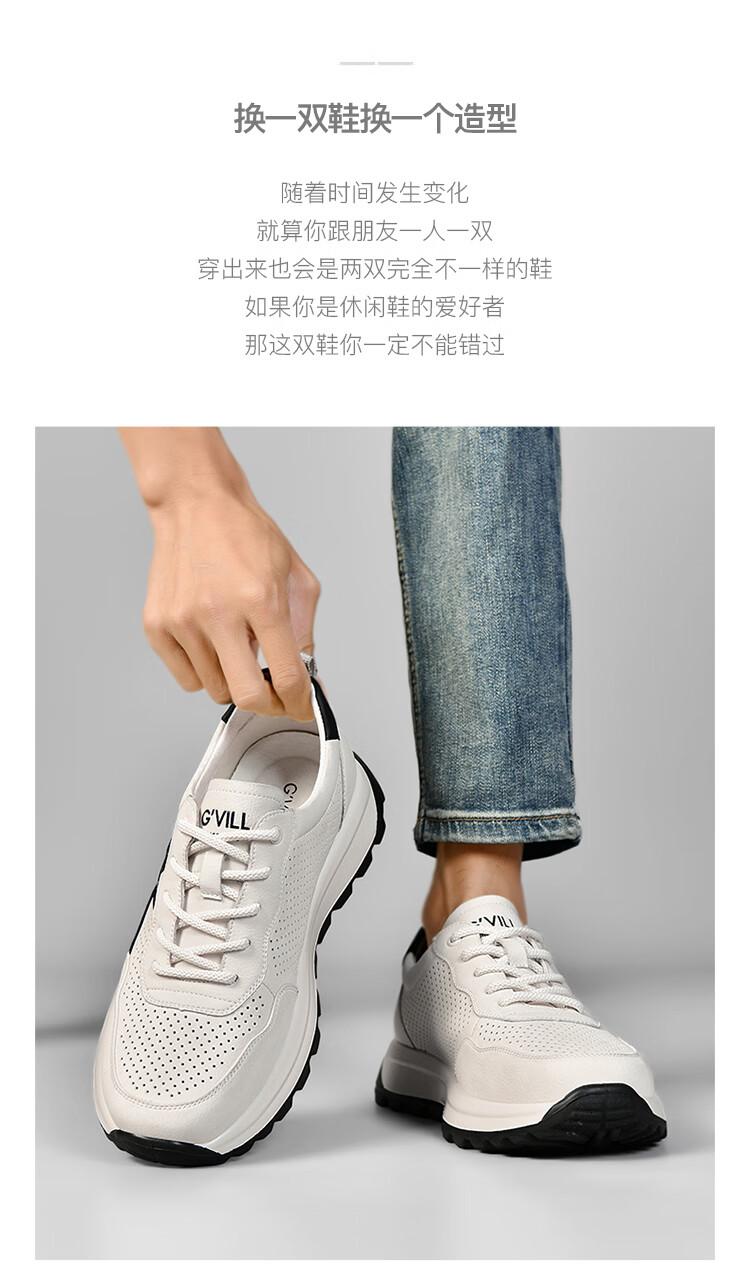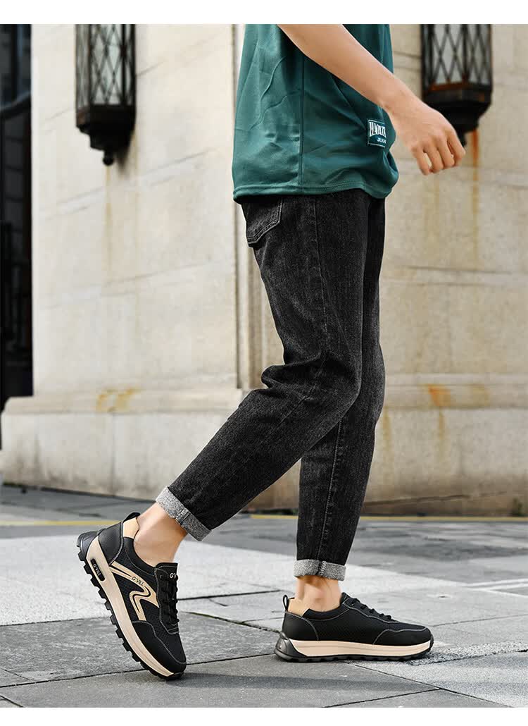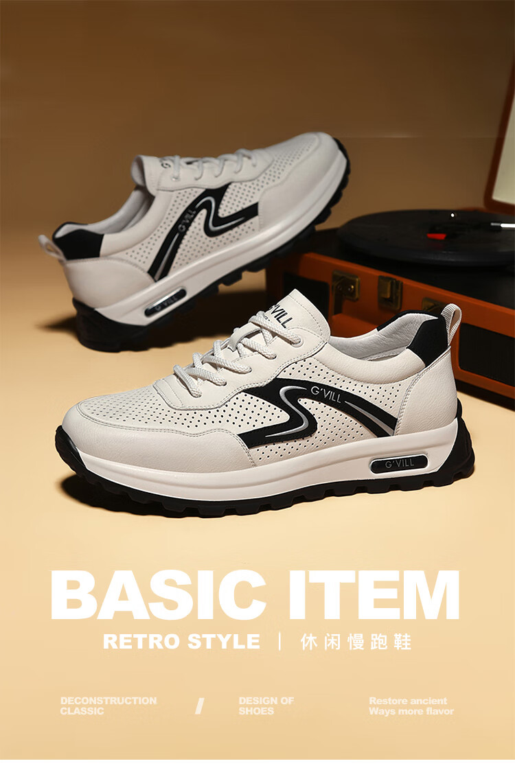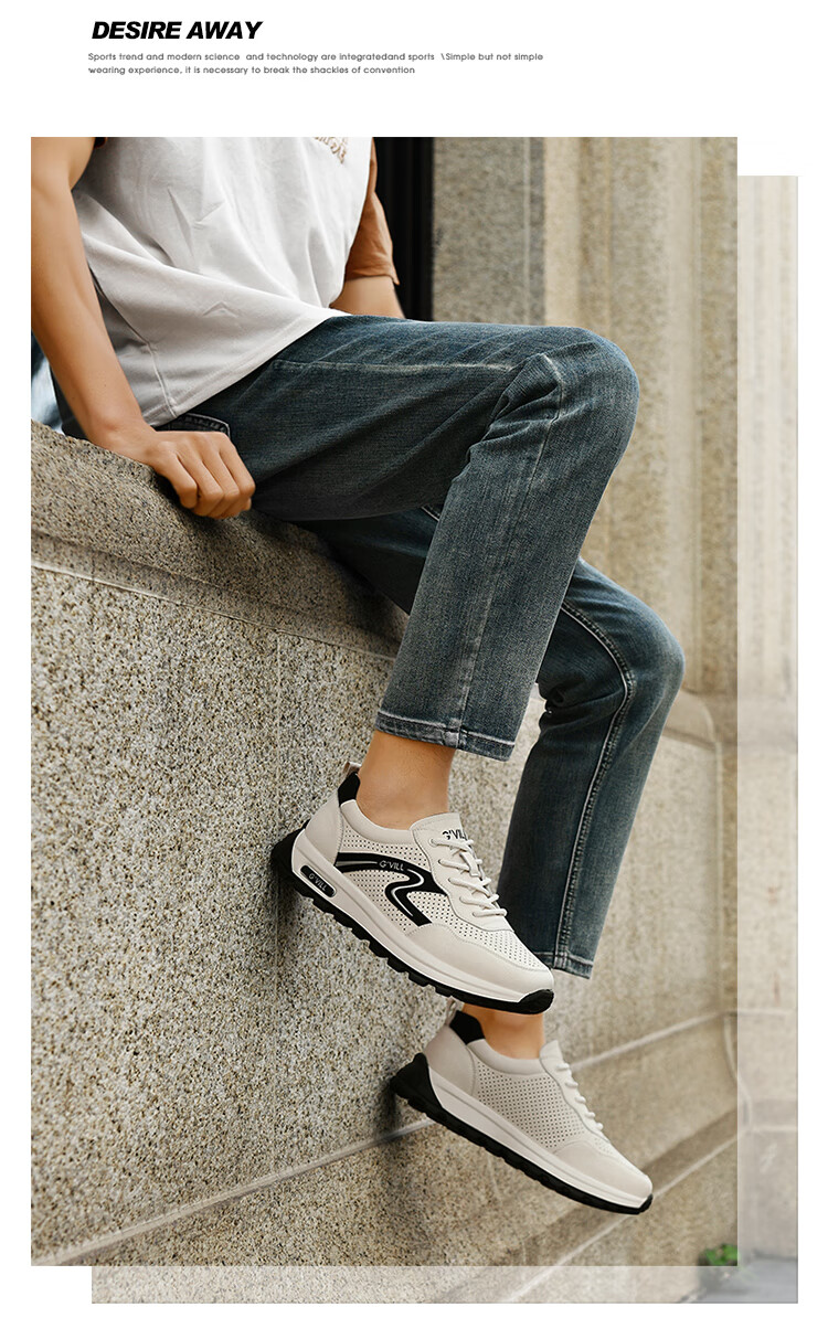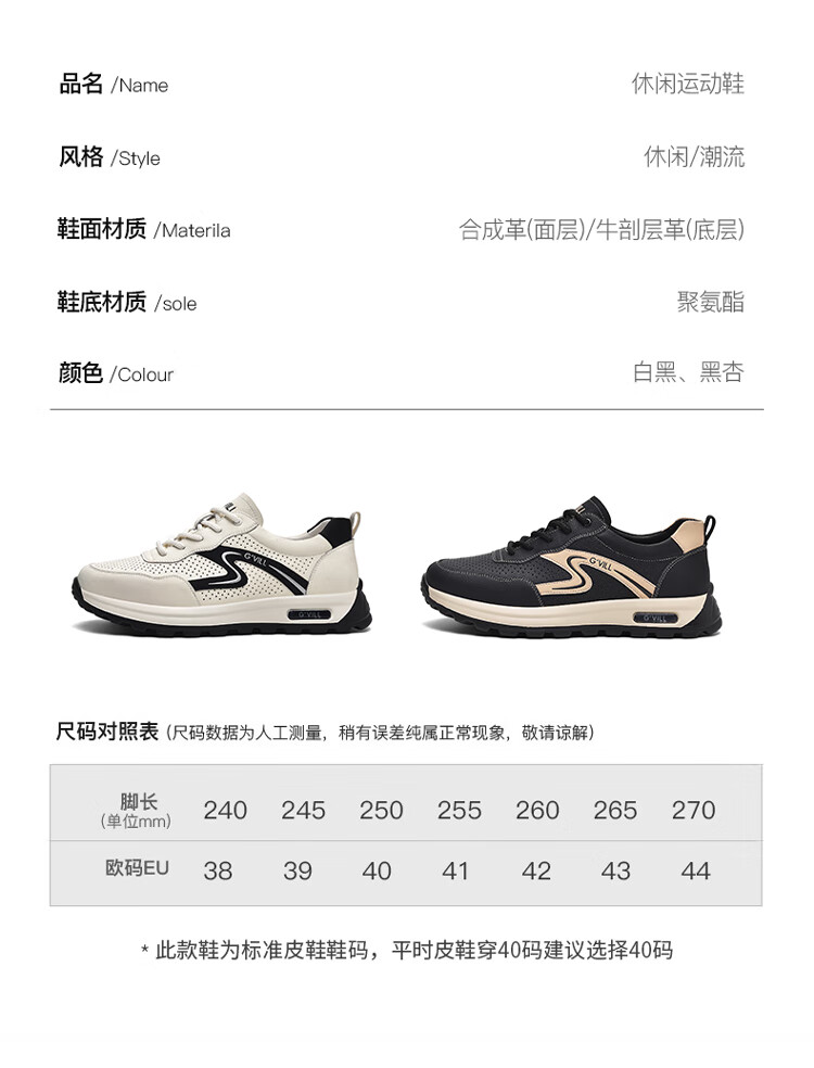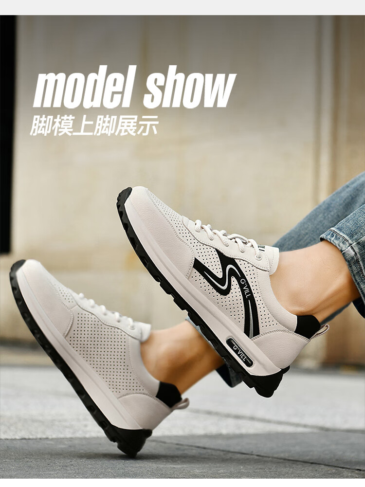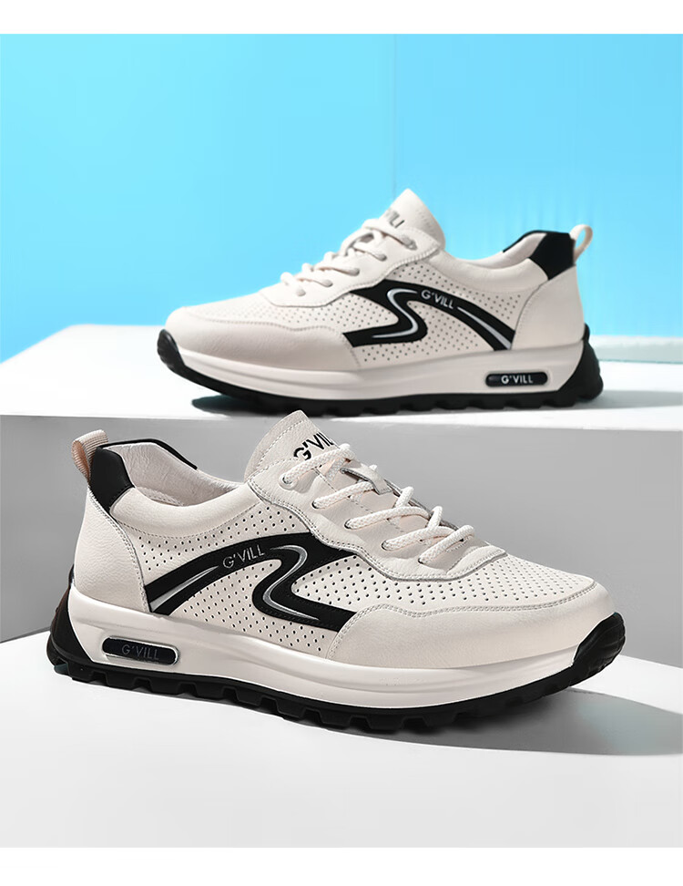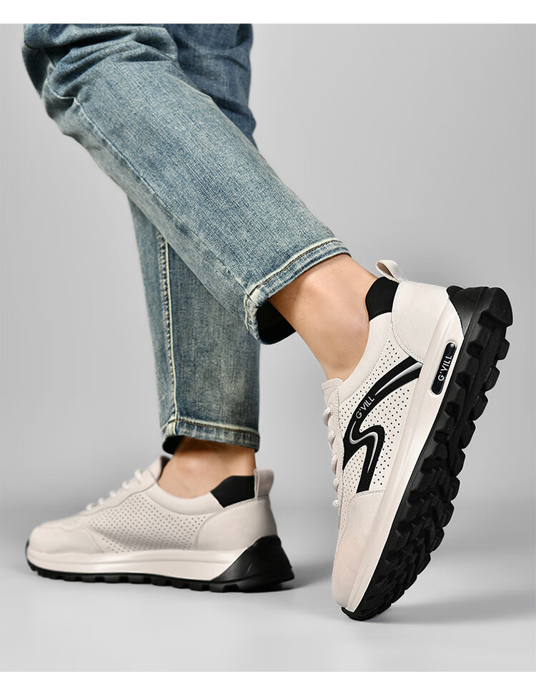 贵之步新款百搭2026男士夏季镂空运动鞋打孔透气厚底防滑百搭休闲健步鞋 黑杏[镂空透气] G1705 42 (皮鞋码)
