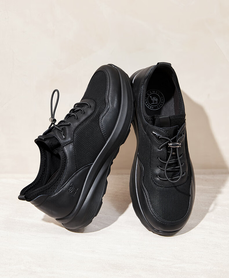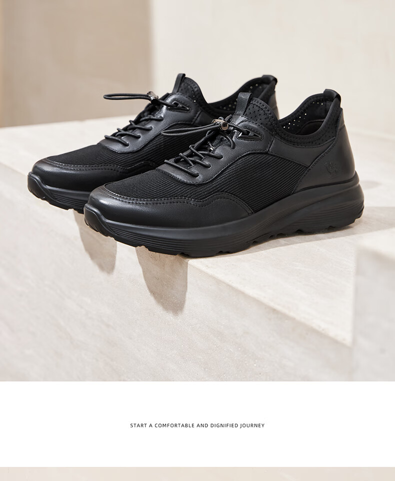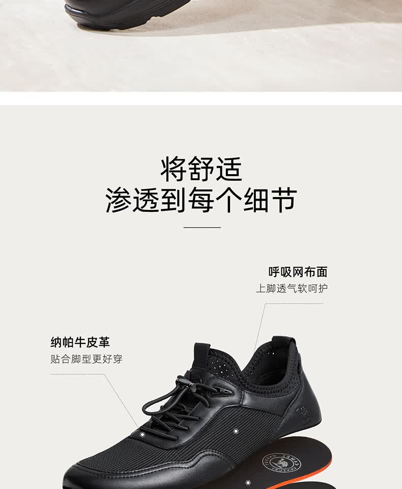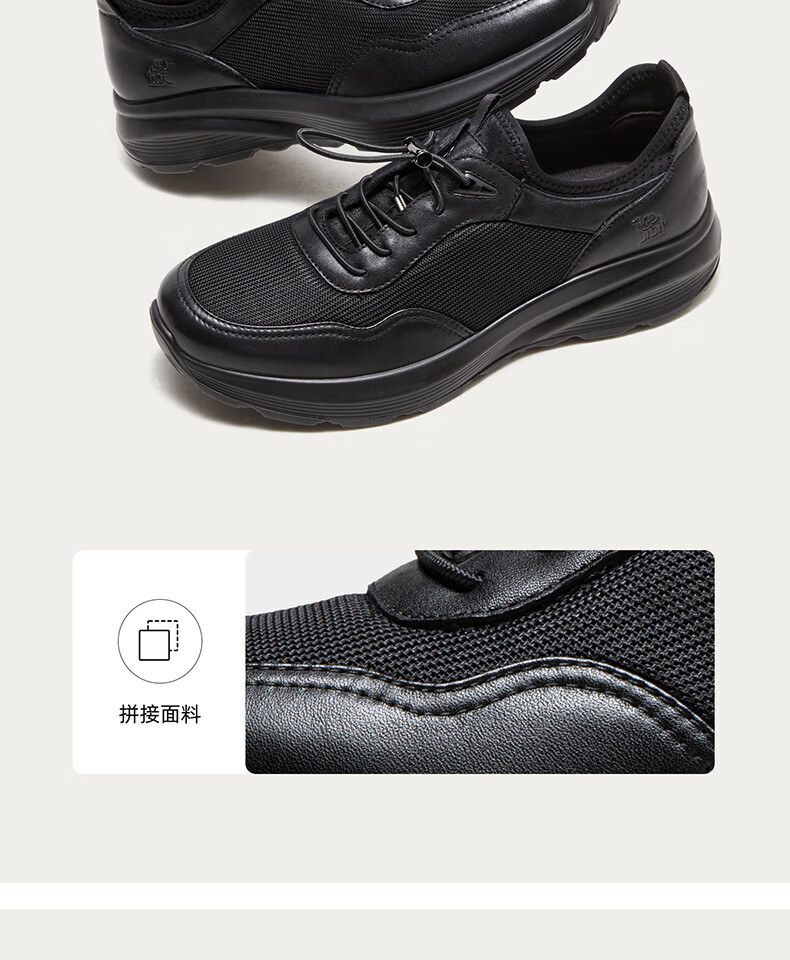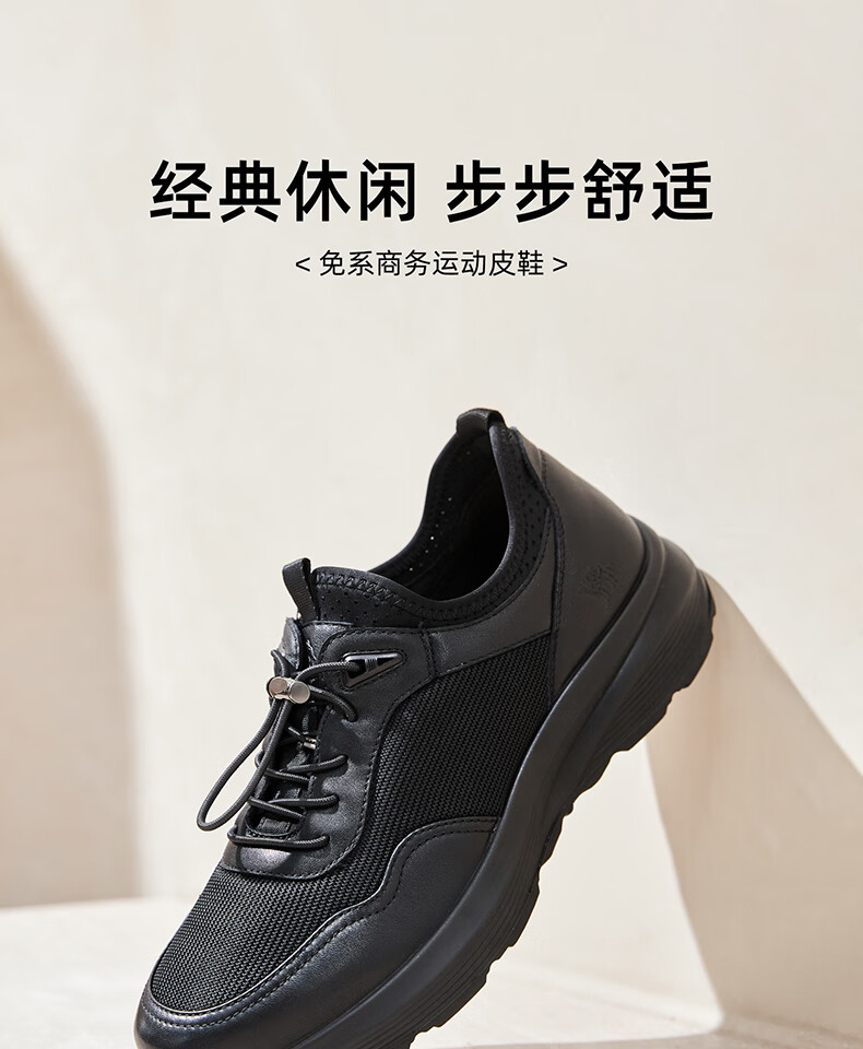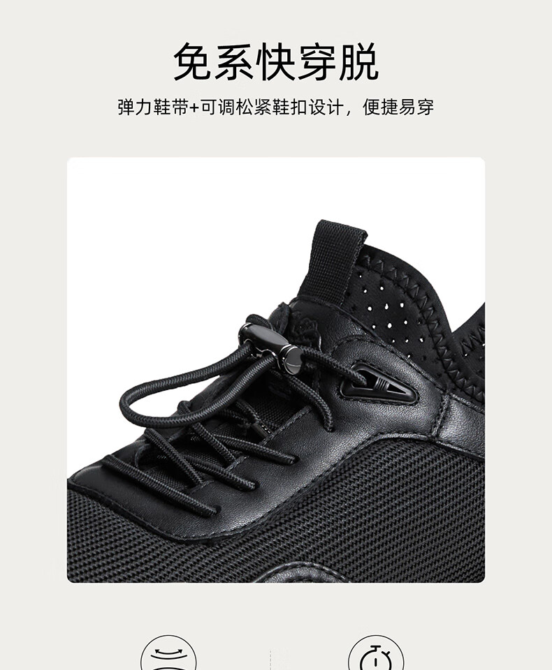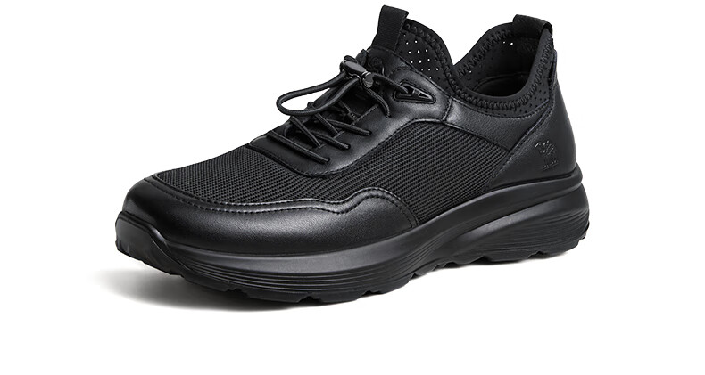 骆驼(CAMEL)透气网布牛皮快穿商务运动皮鞋男 G14S220621 黑色 42