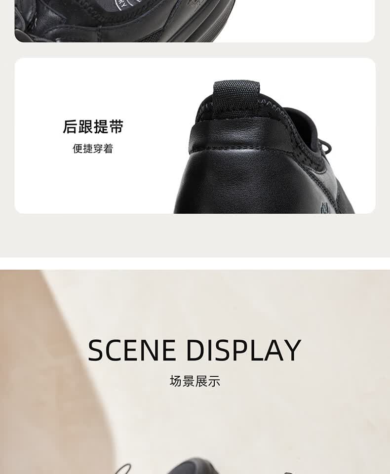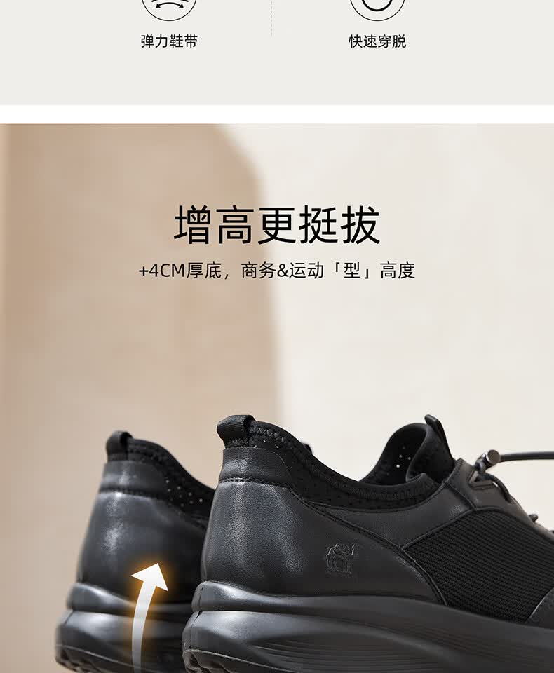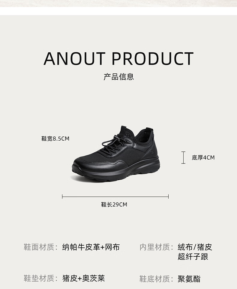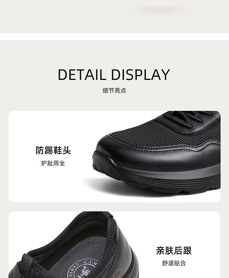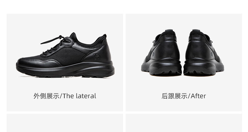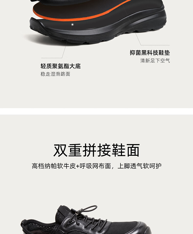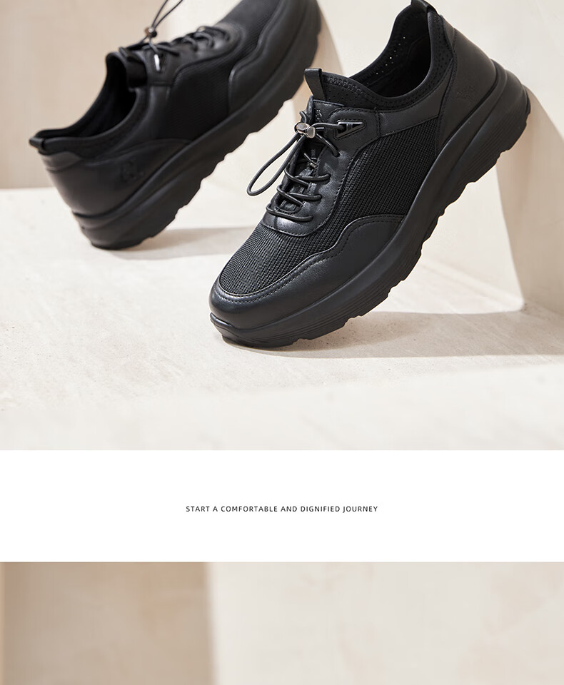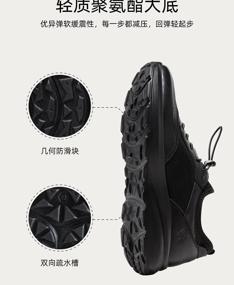 骆驼(CAMEL)透气网布牛皮快穿商务运动皮鞋男 G14S220621 黑色 42
