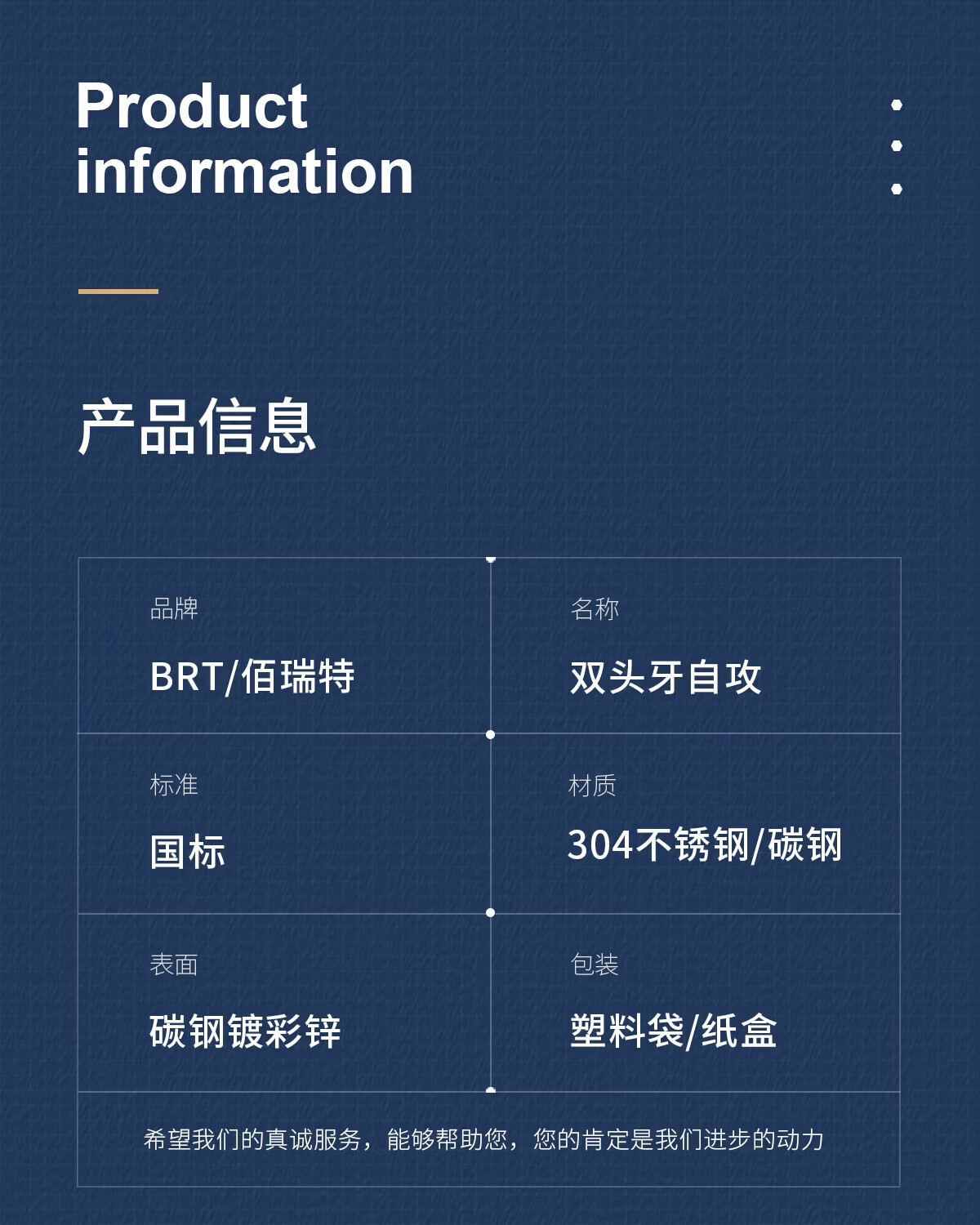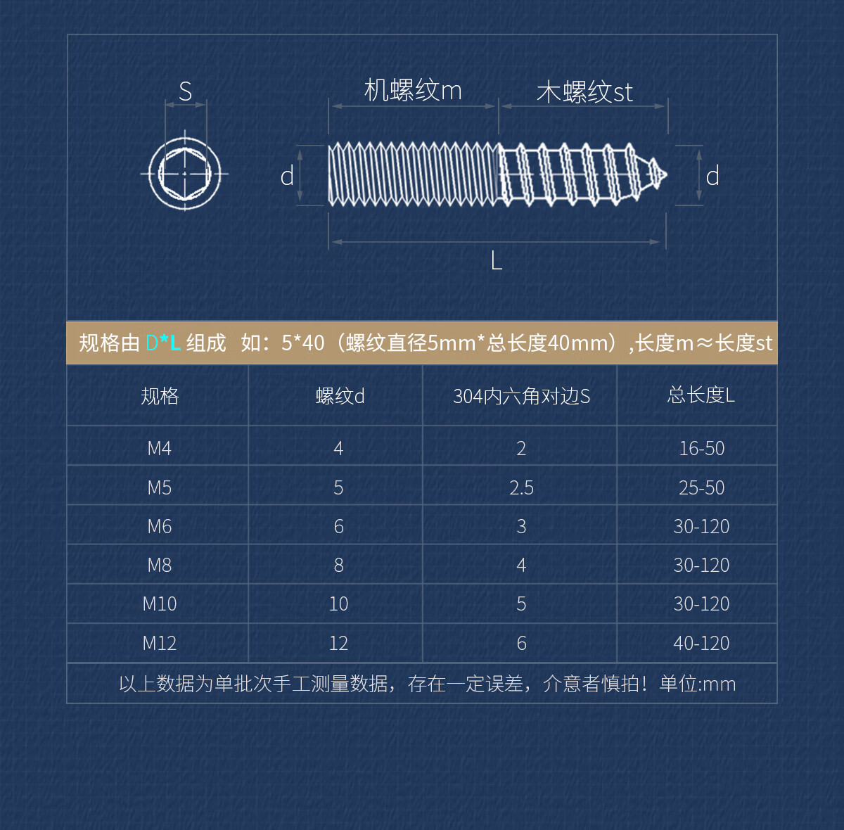 佰瑞特(bairuite)自攻钉304双头牙螺丝内六角螺丝楼梯双头牙尖尾自攻螺栓无头M4M6M8M10GH M4*30(50个)304双牙内六角 大包装