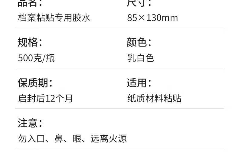 华胜冠档案专用胶水无酸胶水档案粘书专用白乳胶 500克(1瓶)