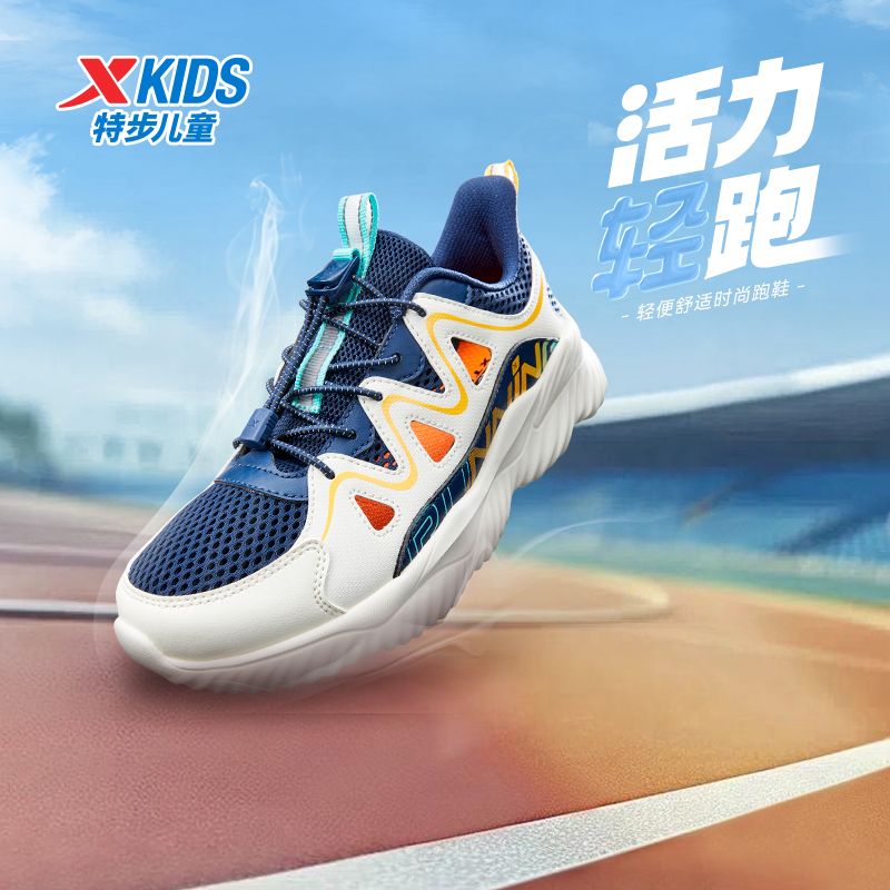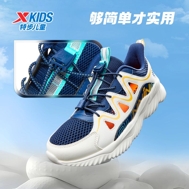 特步童鞋2025夏季新款男童中大童透气学生百搭网面镂空运动鞋跑鞋