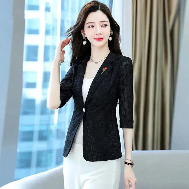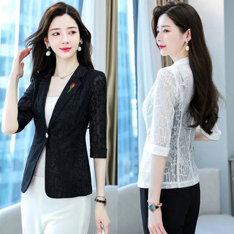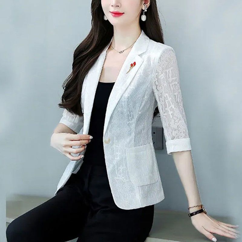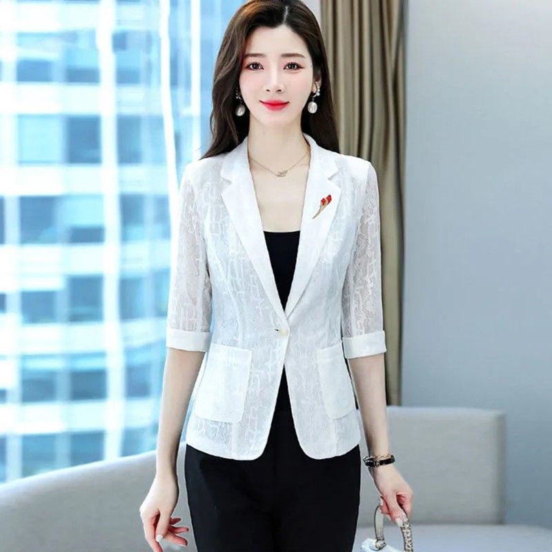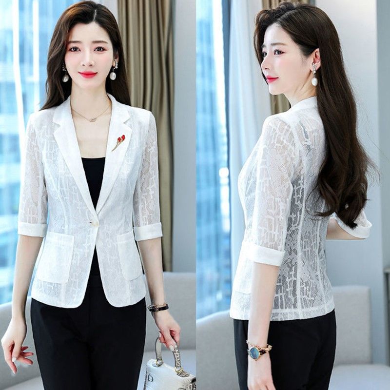 白色防晒外套2024春夏新款小个子休闲短款蕾丝西服西装薄款小西装