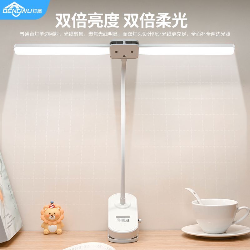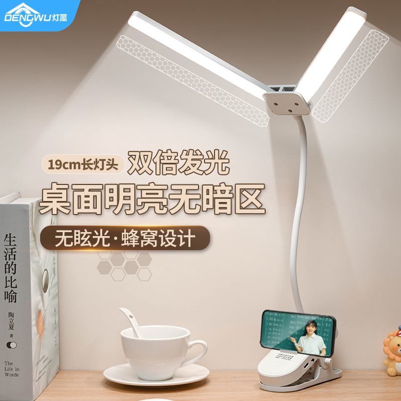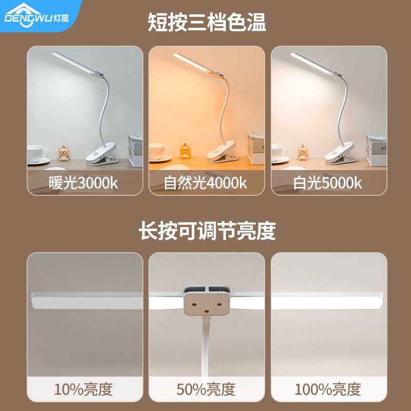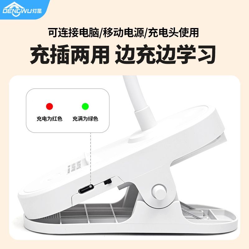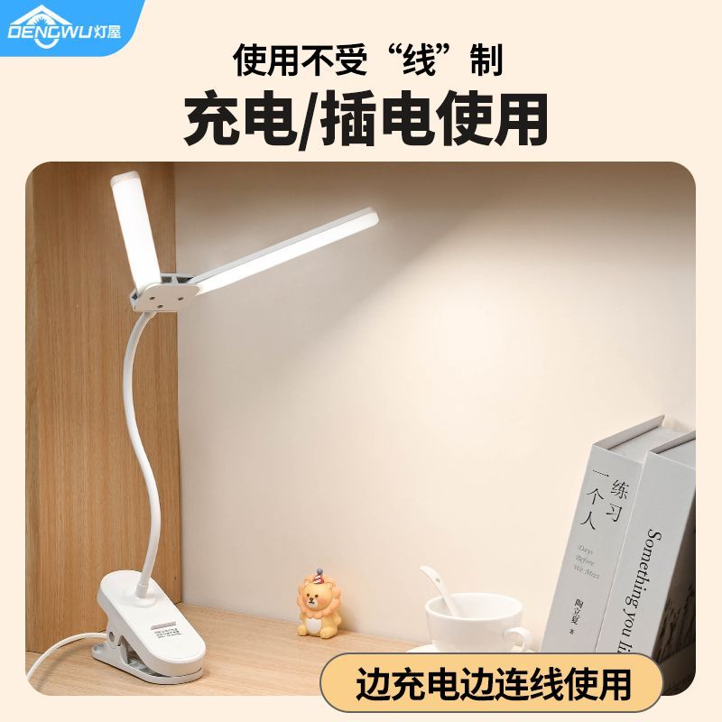 灯屋夹式LED台灯护眼学习灯充电插电学生宿舍灯夹子床头阅读台灯