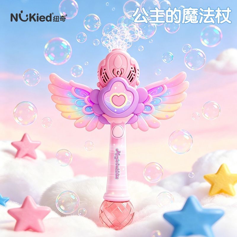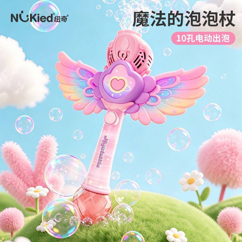 纽奇儿童天使魔法泡泡棒全自动电动手持吹泡泡机女孩玩具儿童礼物