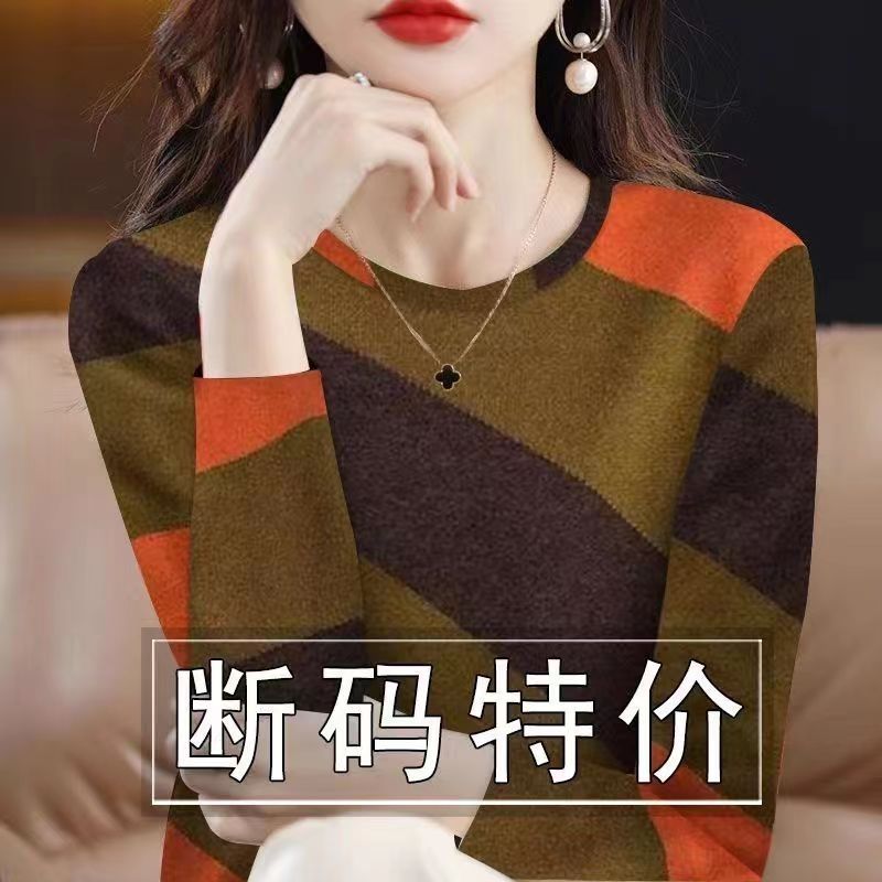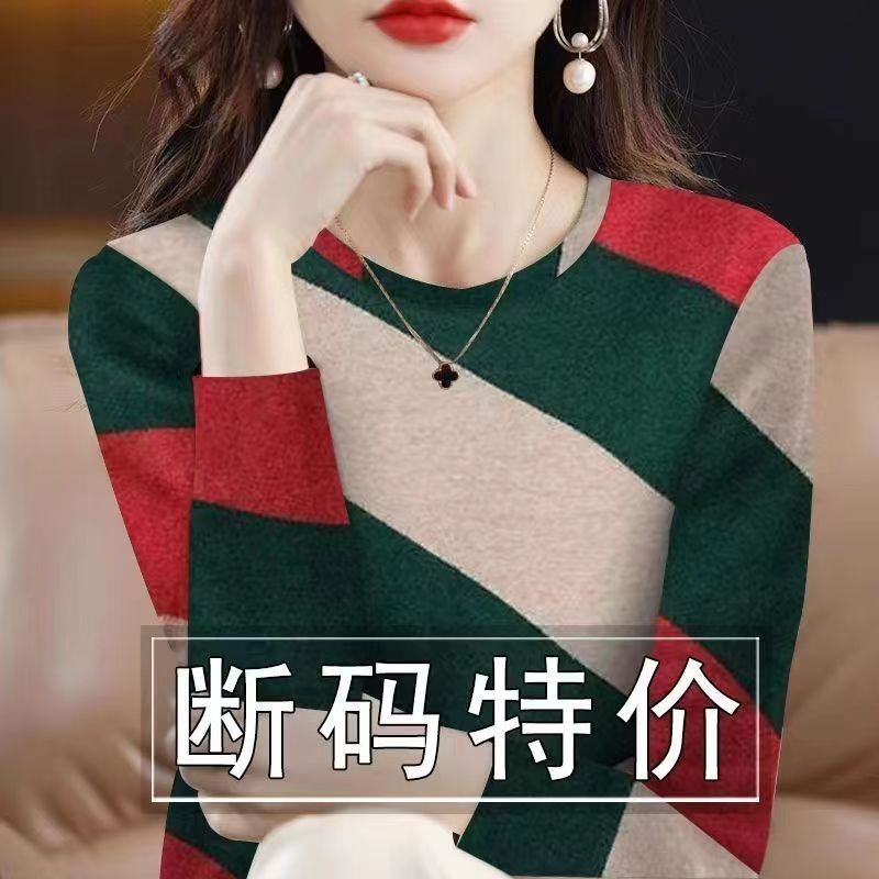 清仓捡漏~专柜剪标女长袖打底衫撞色新款内搭外穿印花遮肚T恤女