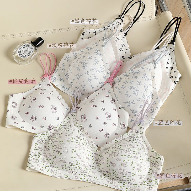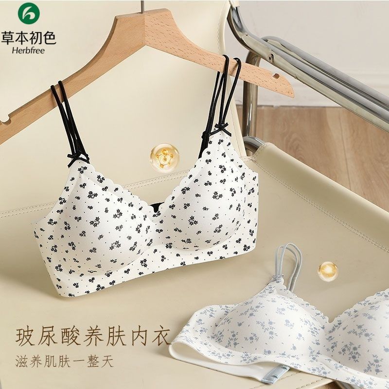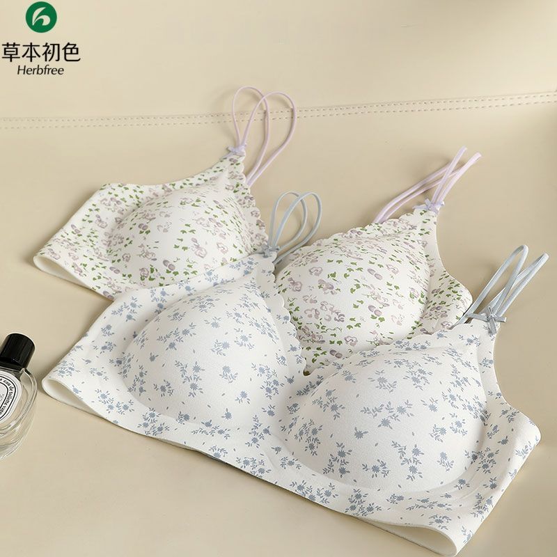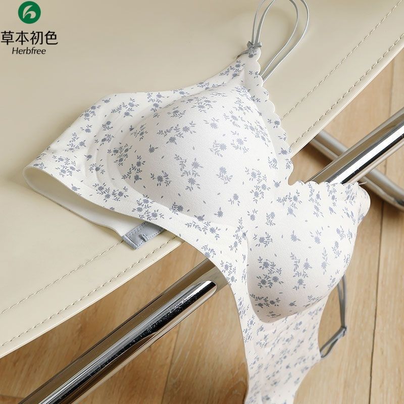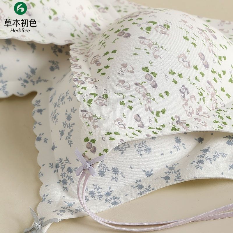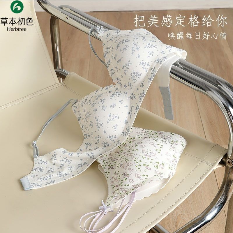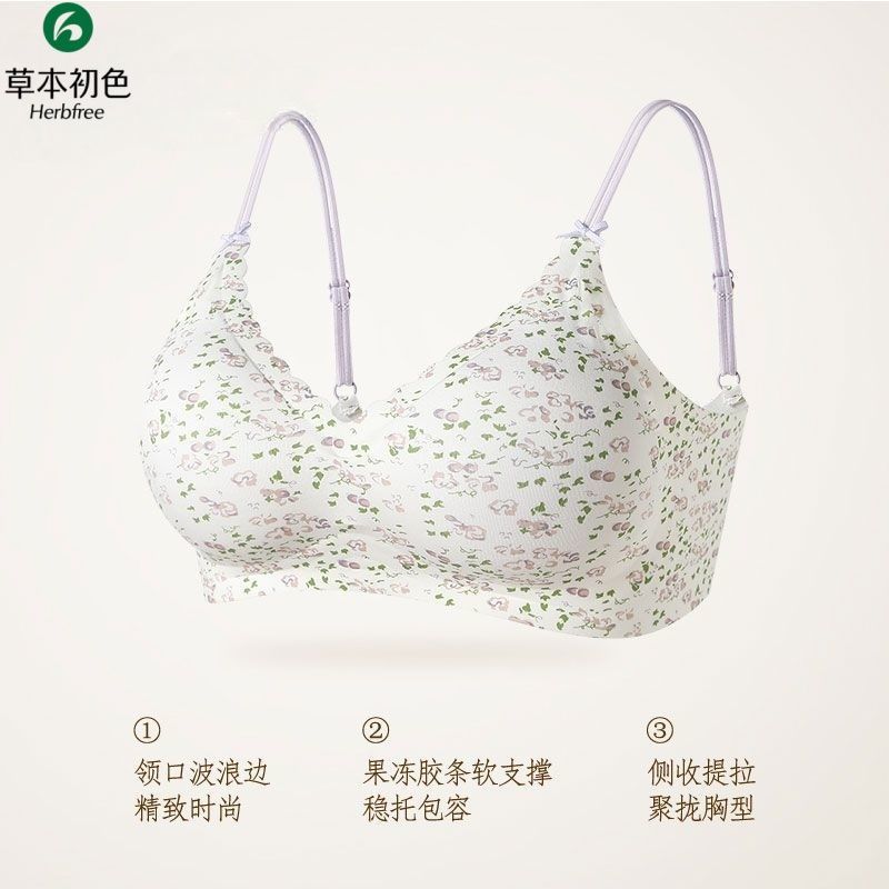 草本初色显瘦无痕女士内衣碎花果冻软支撑聚拢防垂无钢圈文胸套装