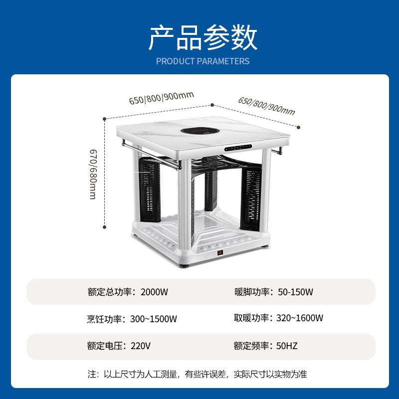 钻石方桌电暖炉电烤炉家用语音智能烤火桌多功能一体电暖桌保温