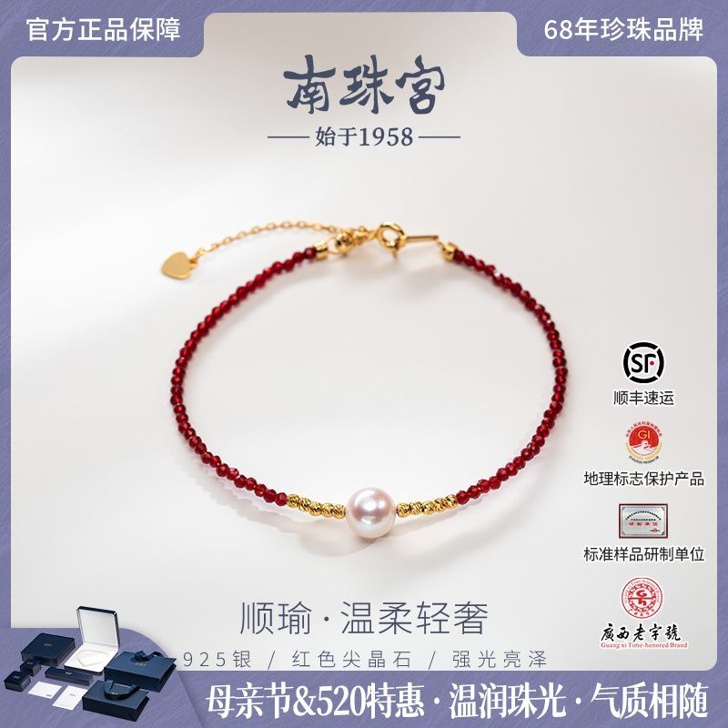 南珠宫[顺瑜]淡水珍珠手链S925银尖晶石路路通近圆母亲节礼物