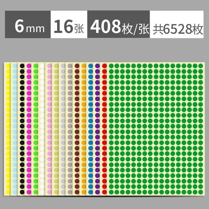 6mm彩色圆形圆点不干胶标签白色贴纸颜色标贴口取纸分类标记粘贴