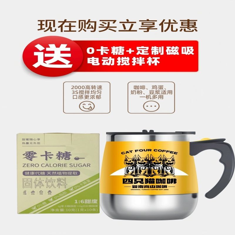 [190条+电动搅拌杯+零卡糖]四只猫到手190条咖啡四只猫三合