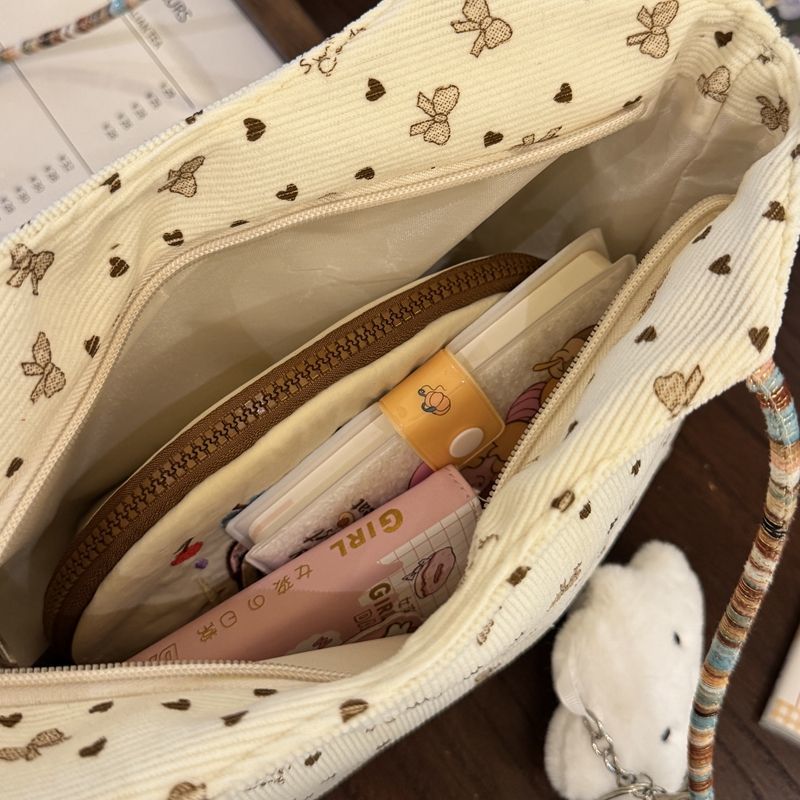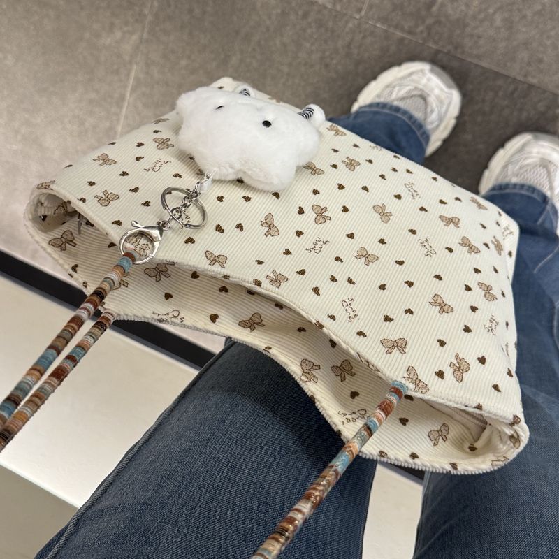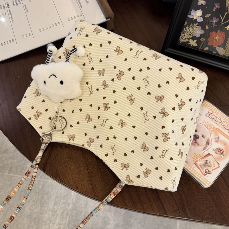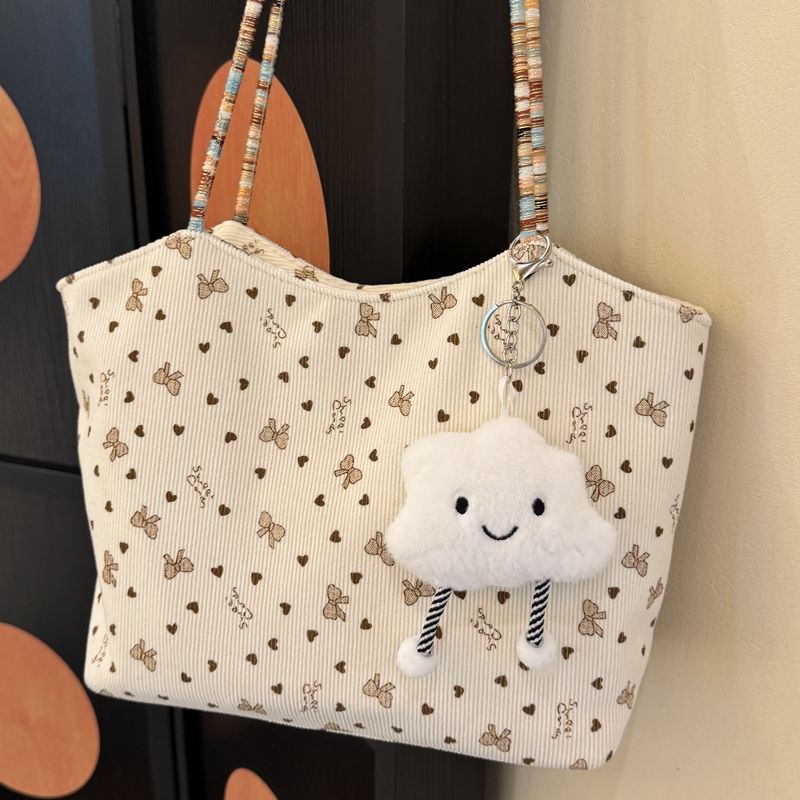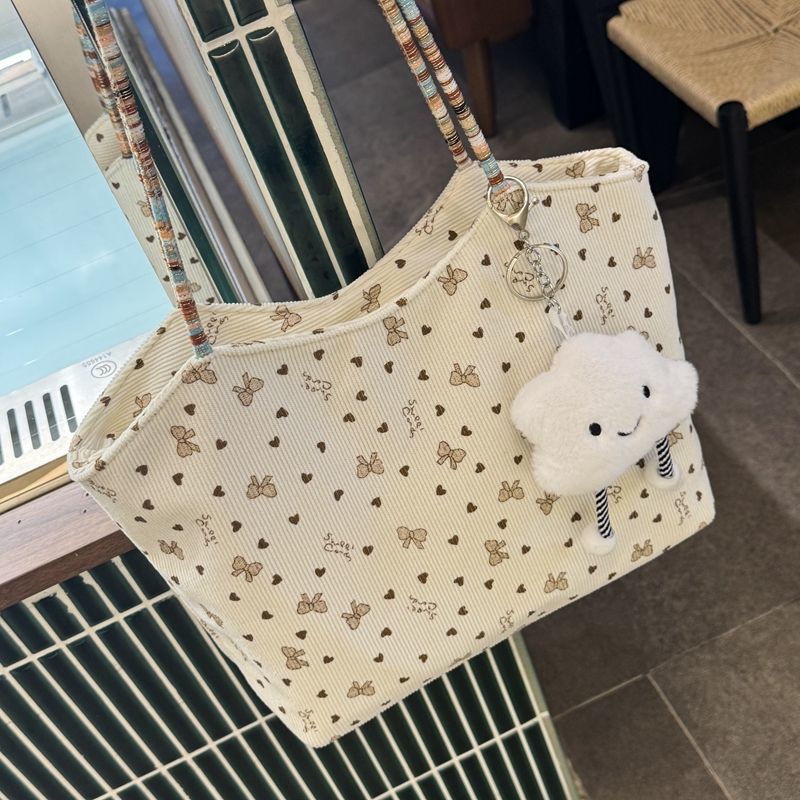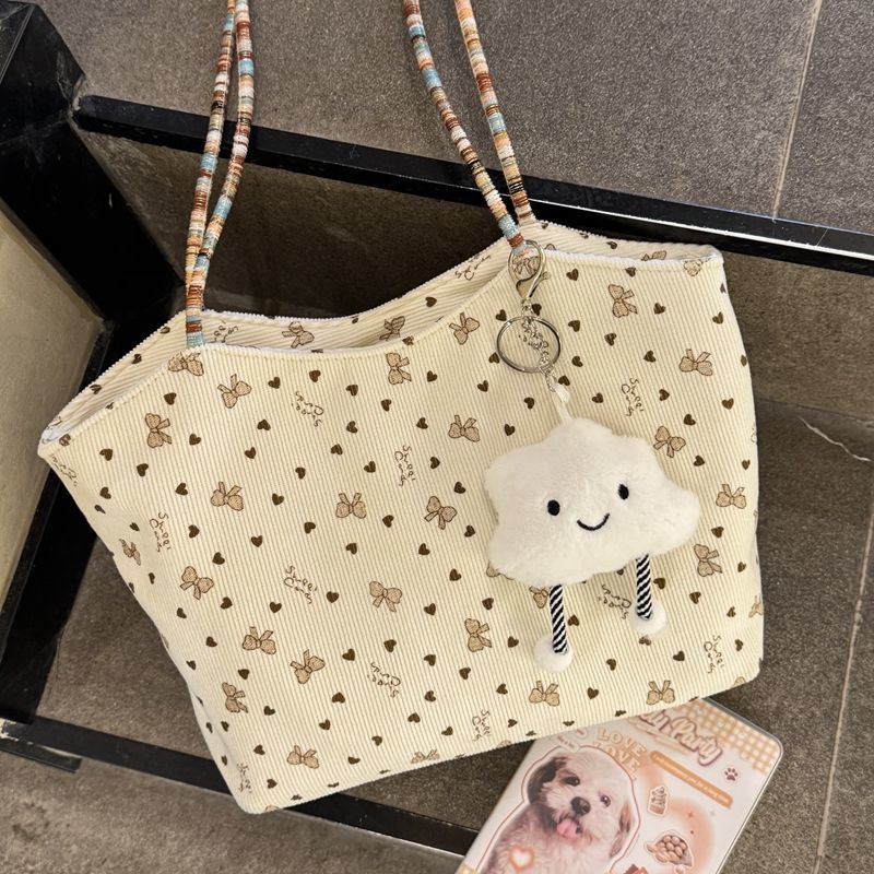 爱心蝴蝶结刺绣包包女编织大容量单肩托特包通勤手提包彩色溜娃