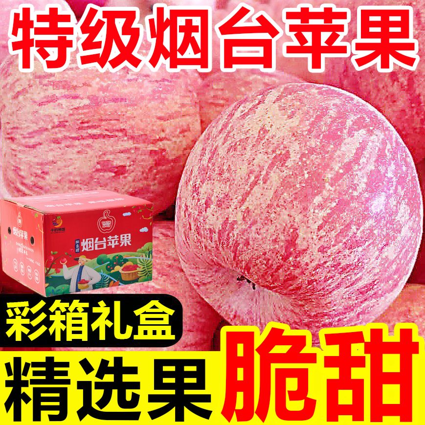 【彩箱】正宗山东烟台红富士苹果脆甜栖霞新鲜苹果水果批发一整箱