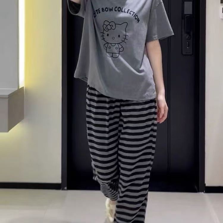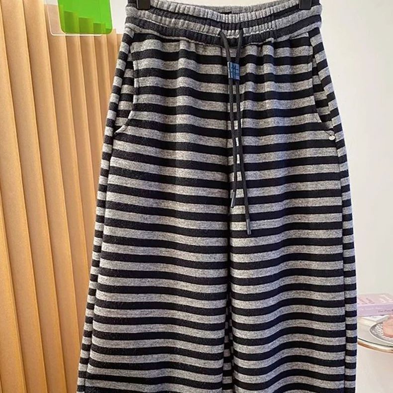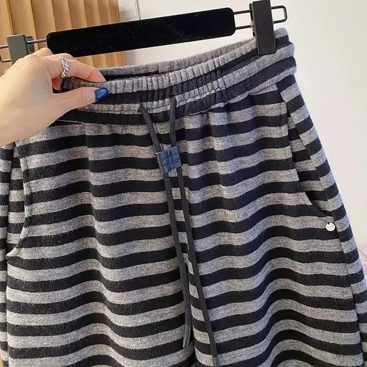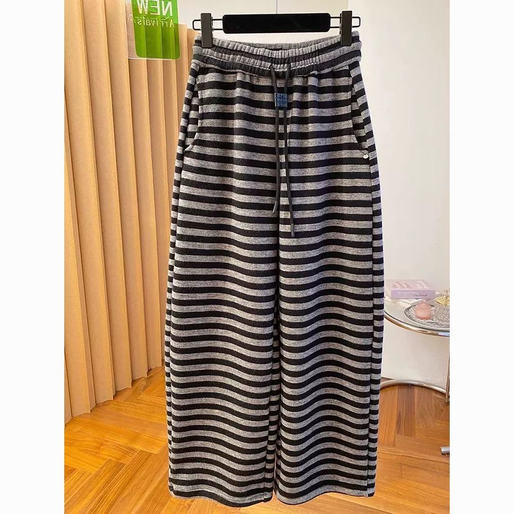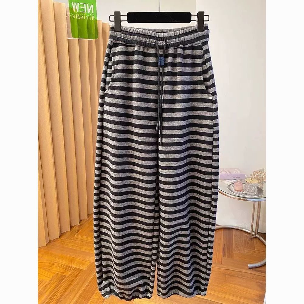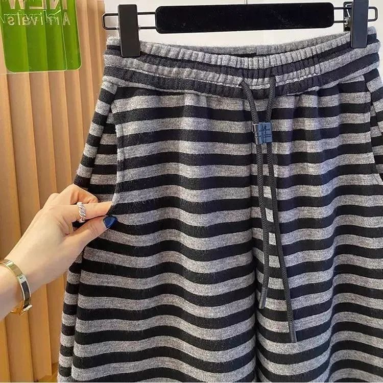 大码200斤高级感薄款香蕉卫裤春季新款宽松休闲直筒裤条纹长裤子