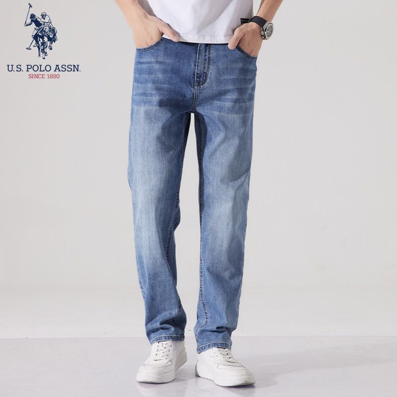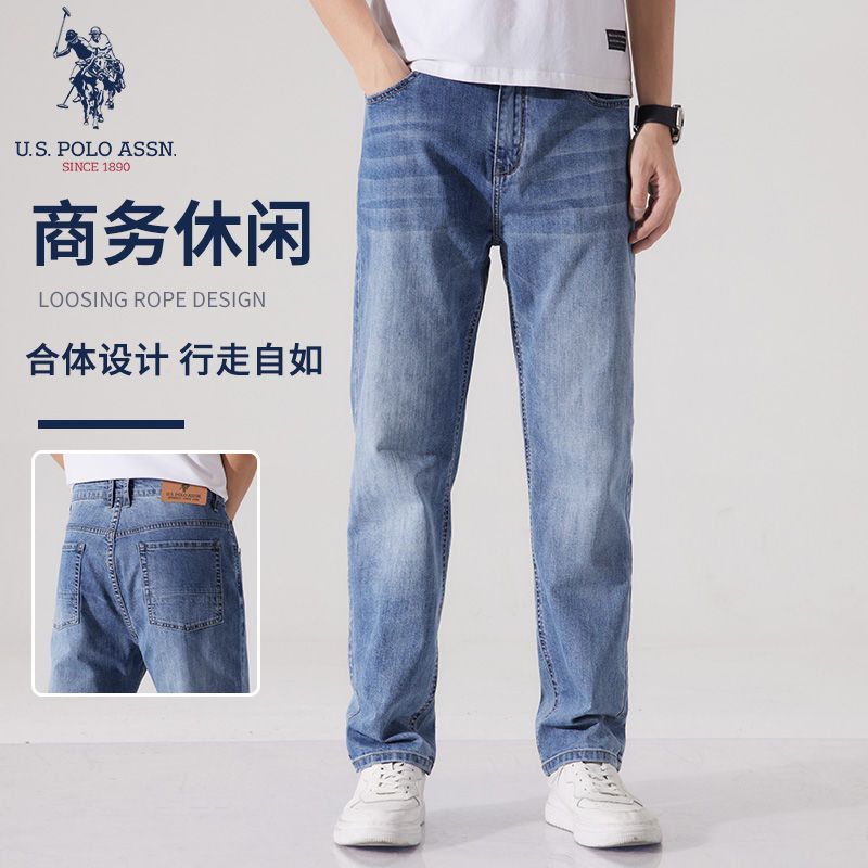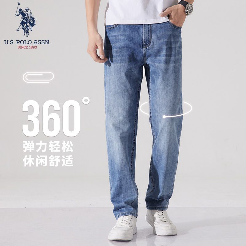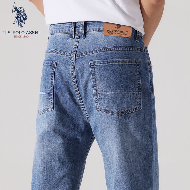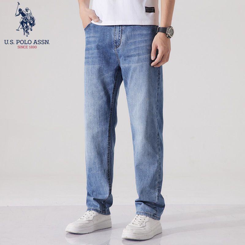 USPOLOASSN春夏新款薄款浅蓝色直筒牛仔裤男休闲弹力修身小脚裤男