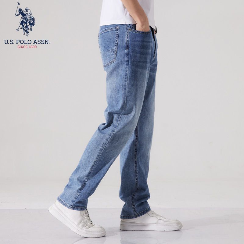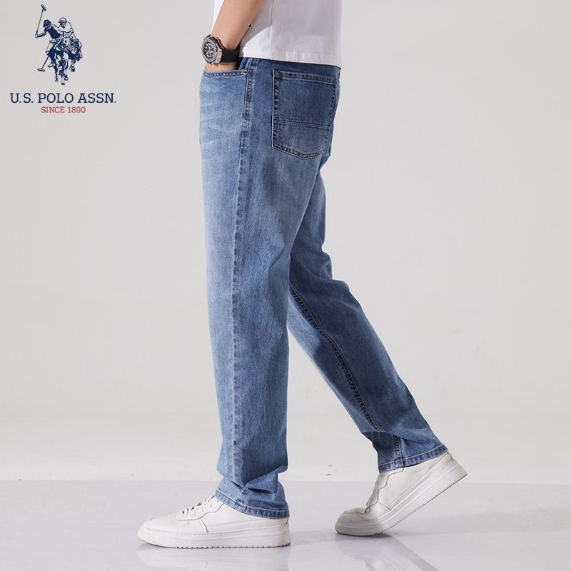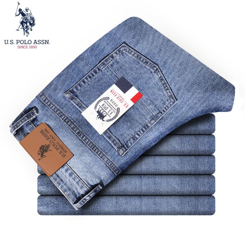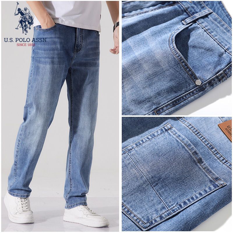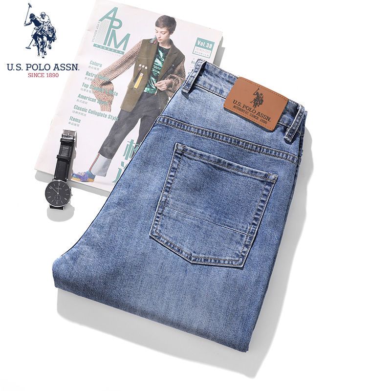 USPOLOASSN春夏新款薄款浅蓝色直筒牛仔裤男休闲弹力修身小脚裤男