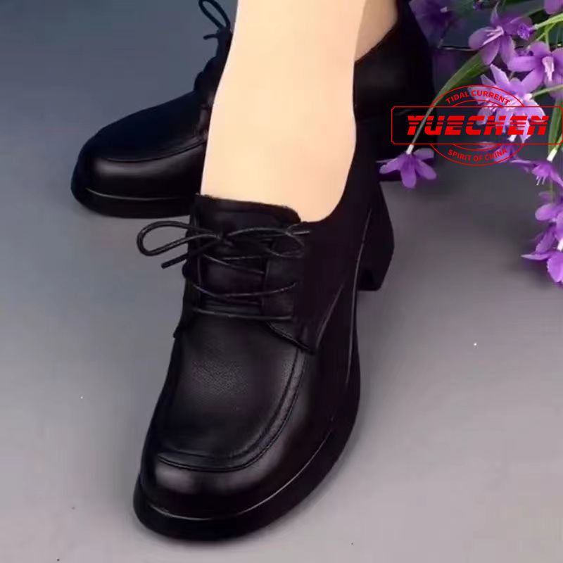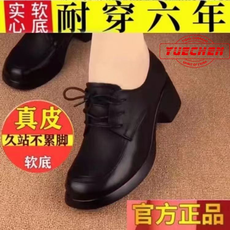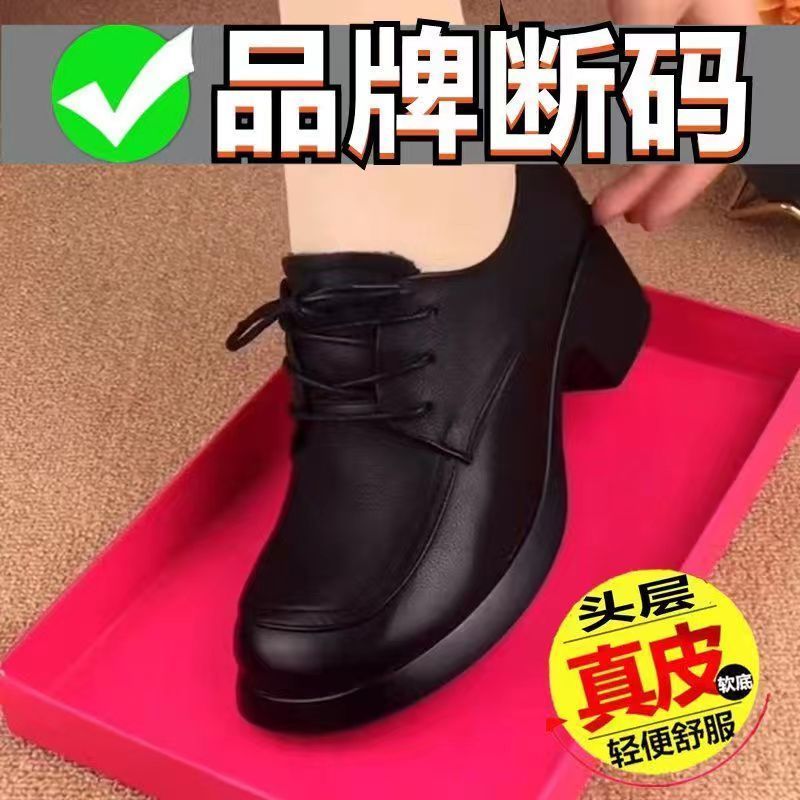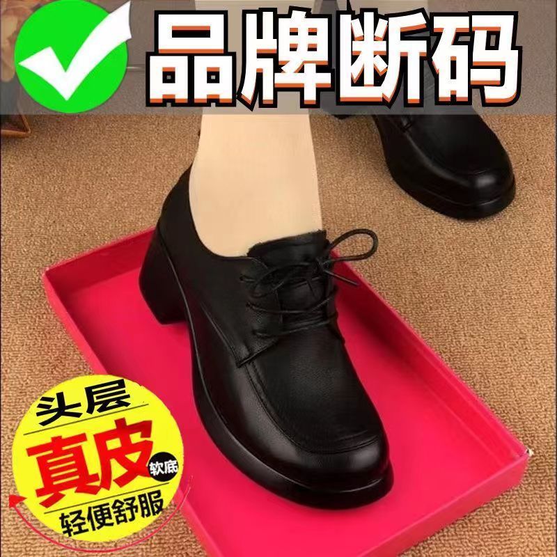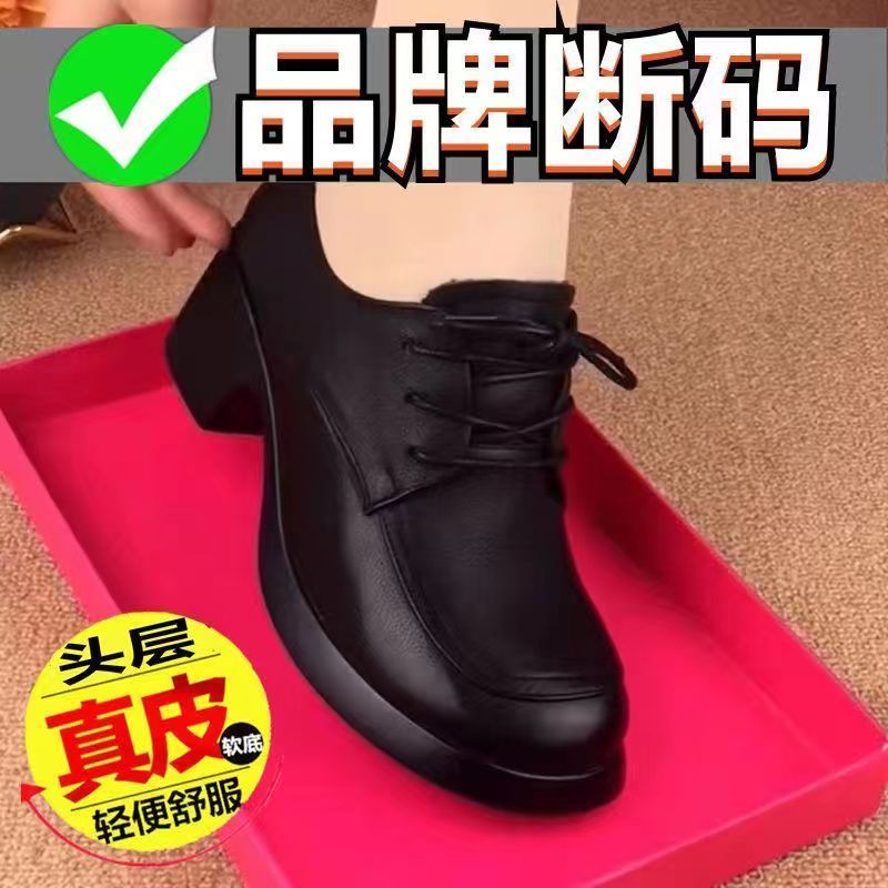 跃臣正品真软皮时尚软底百搭圆头妈妈鞋2024新款系带防滑女士皮鞋