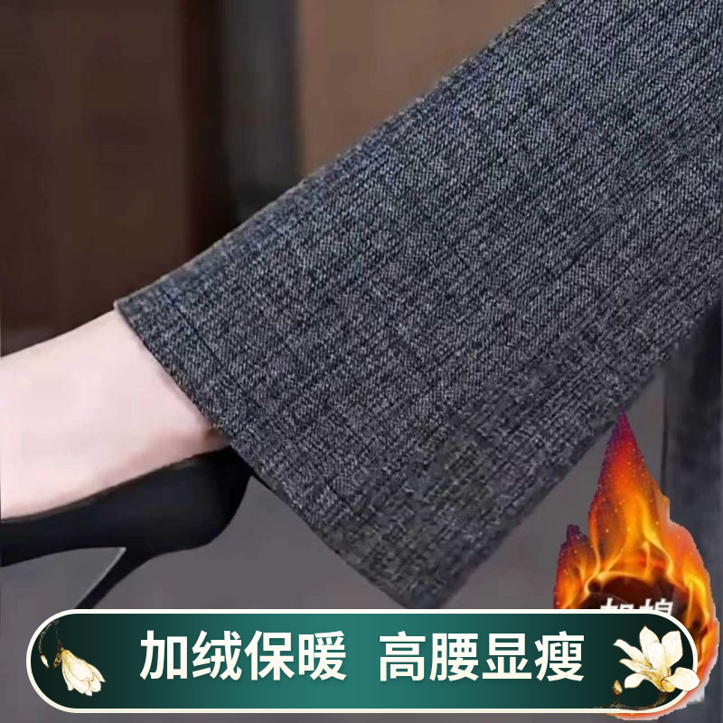 灰色微喇裤子女秋冬新款加绒加厚高腰百搭修身显瘦窄版休闲喇叭裤