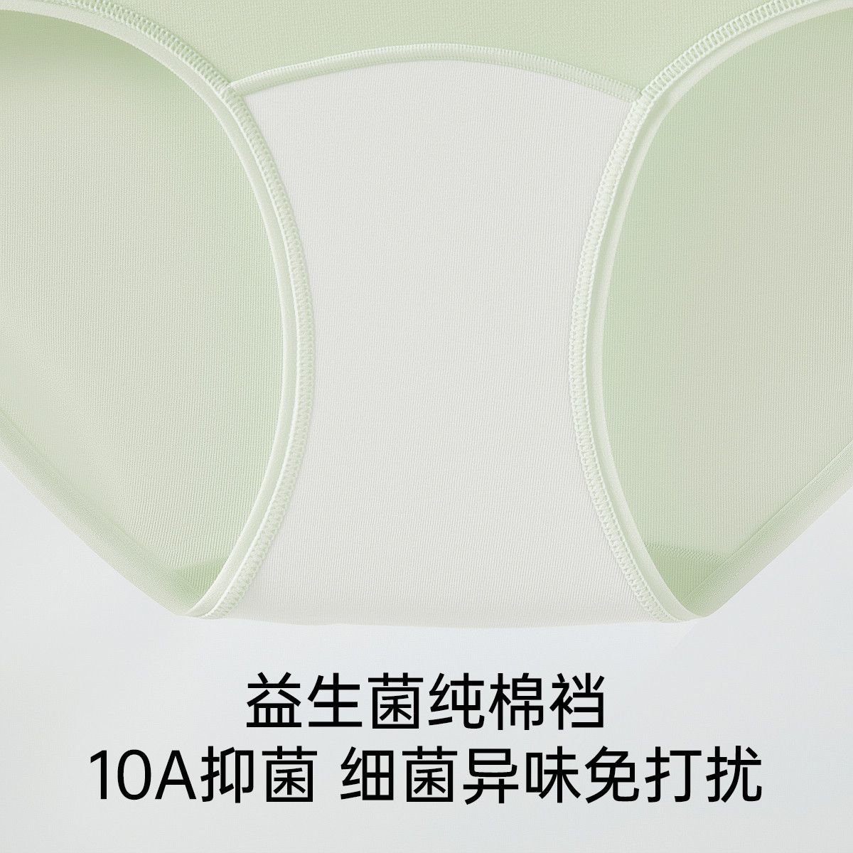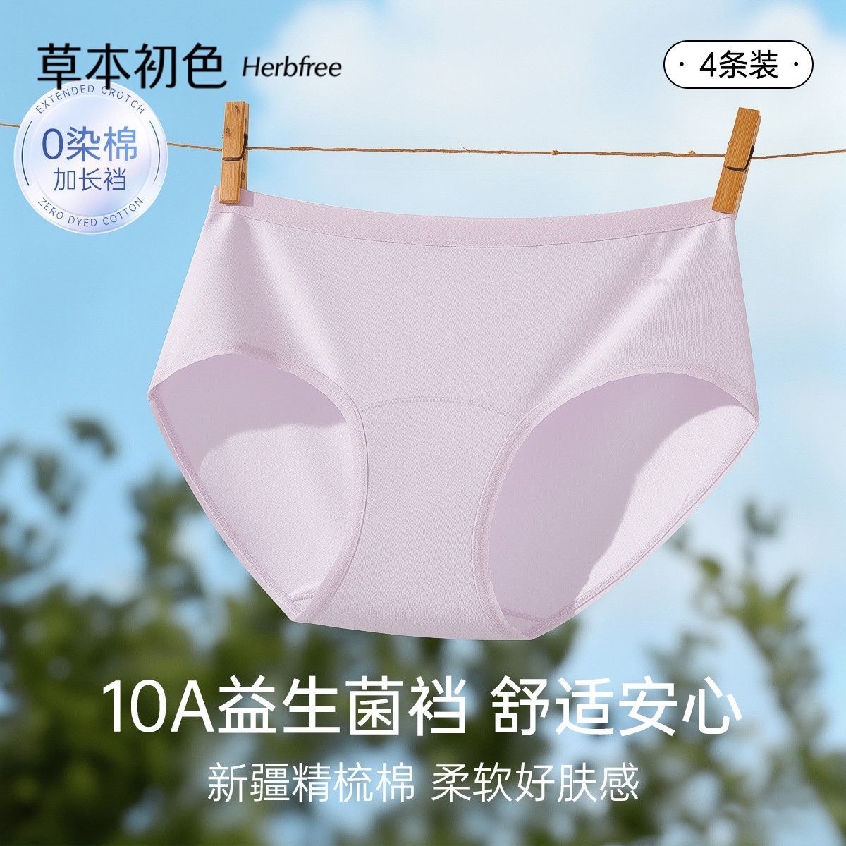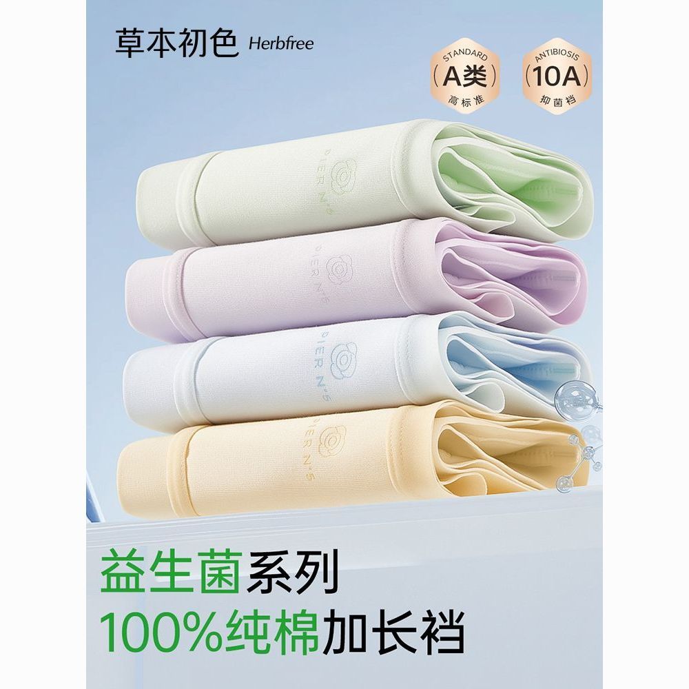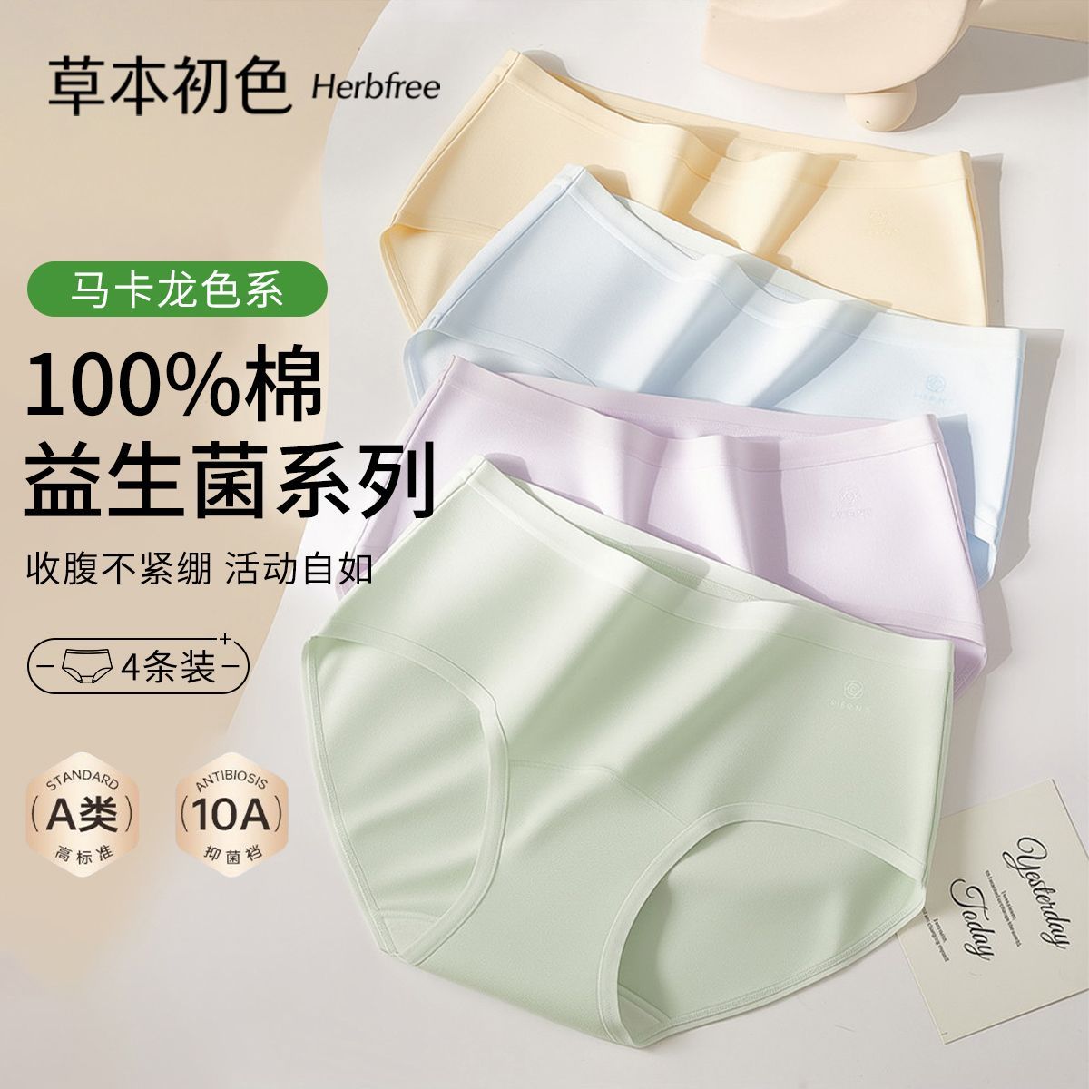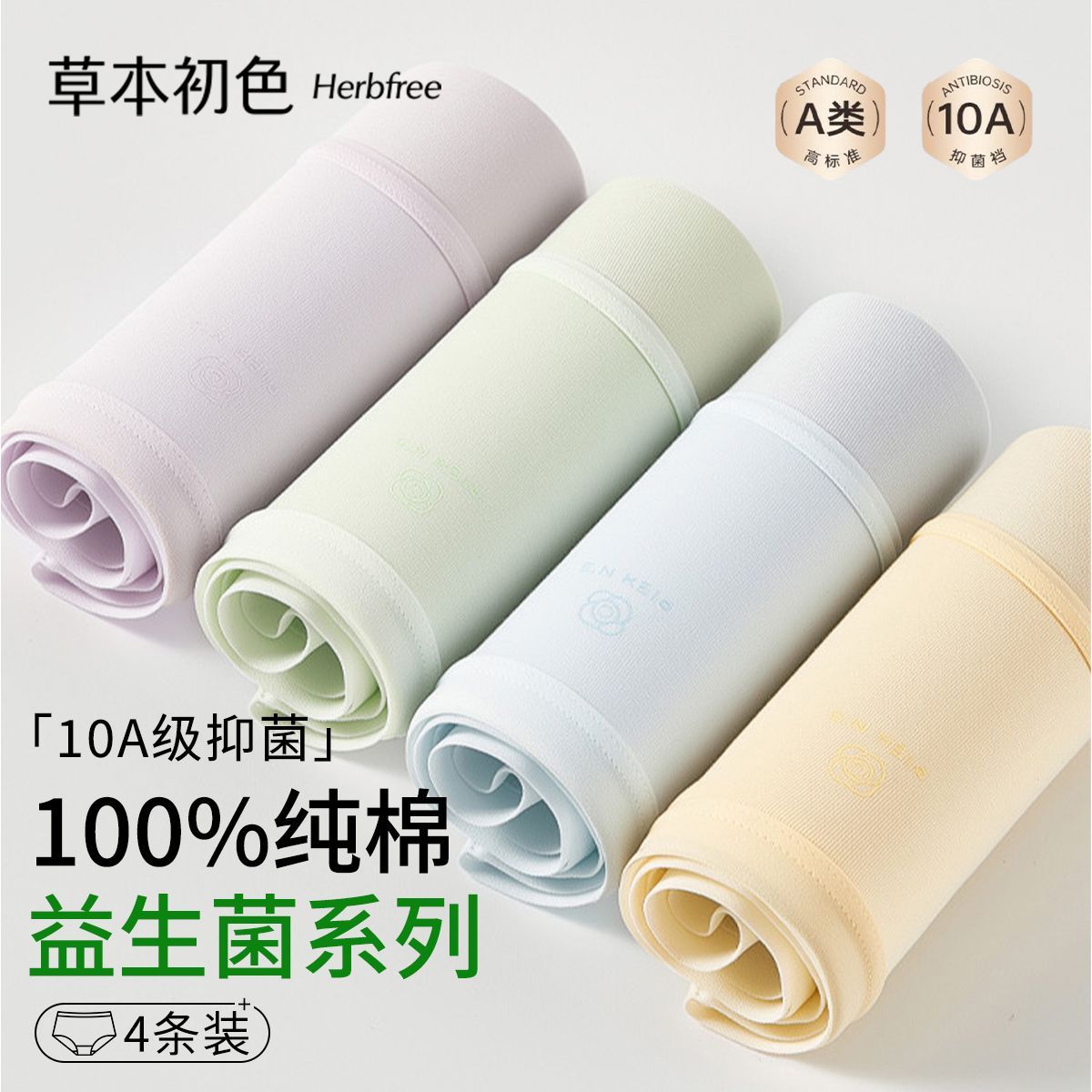 草本初色【100%纯棉益生菌加长裆】女士内裤女中腰三角短裤4条装