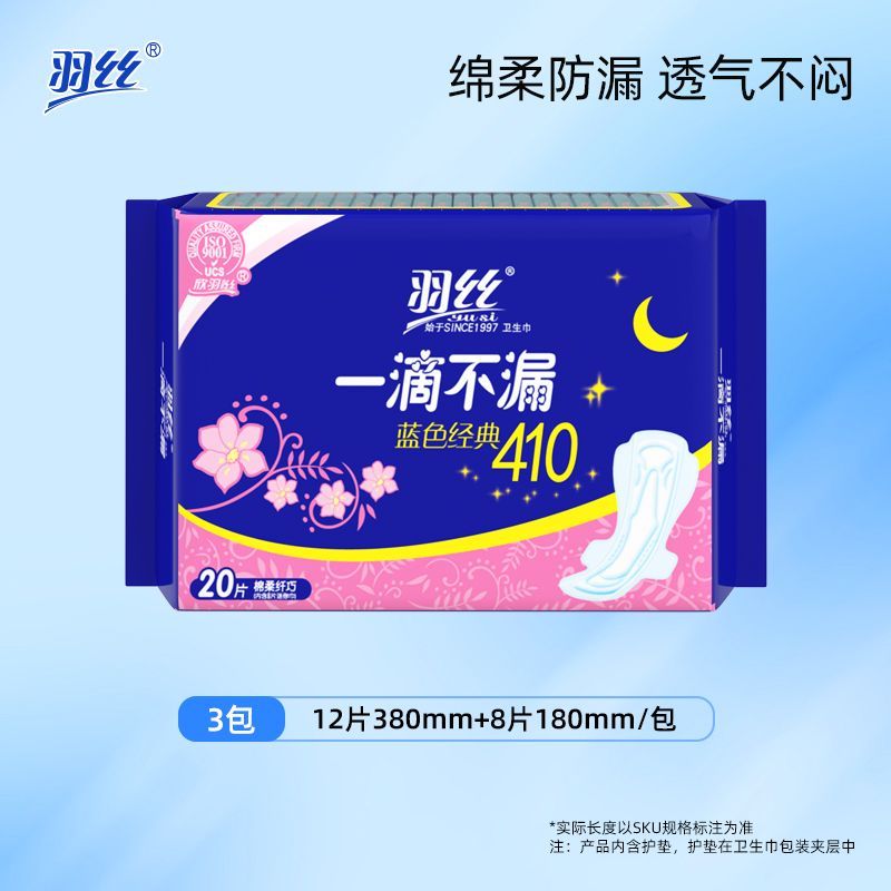 羽丝日夜组合卫生巾380透气防漏学生棉柔姨妈巾加长夜用厂家正品