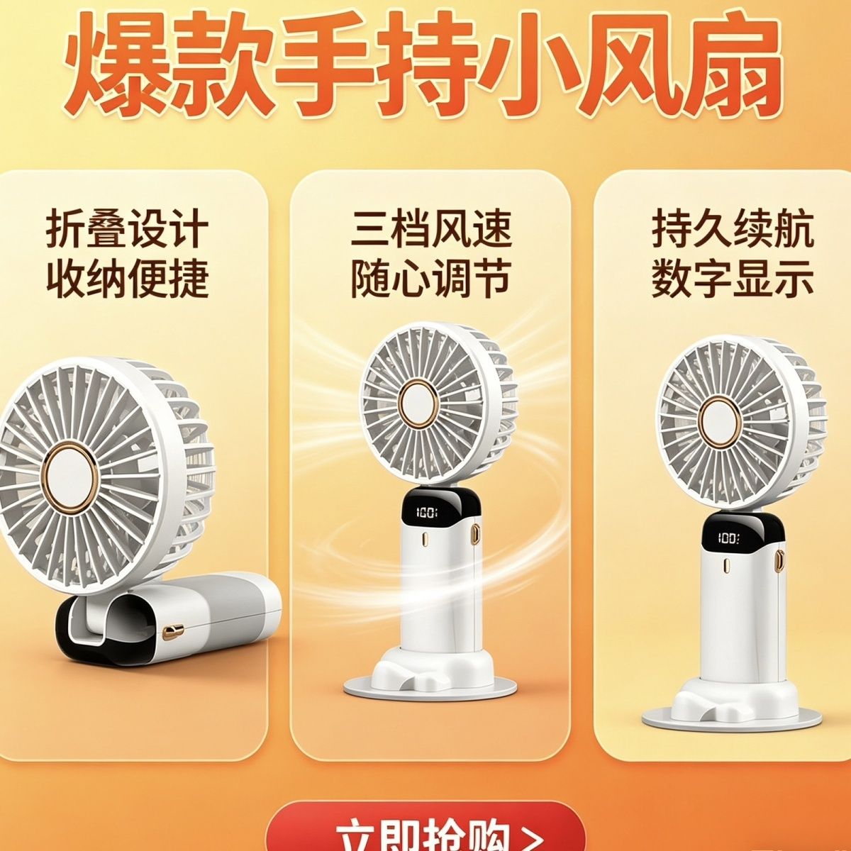 静音手持风扇可充电挂脖懒人学生上课桌面风扇智能数显USB