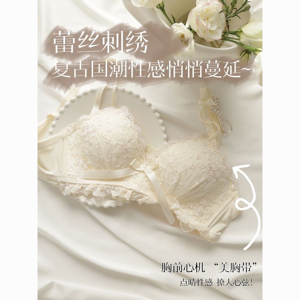 【欧迪芬】少女风小胸聚拢显大无钢圈收副乳防下垂薄款蕾丝文胸