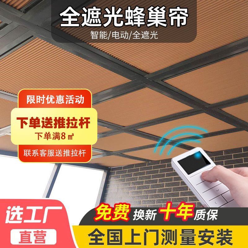 厂家直销蜂巢帘阳光房遮阳顶帘神器玻璃顶电动隔热防晒天窗批发【10天内发货】