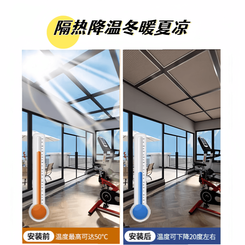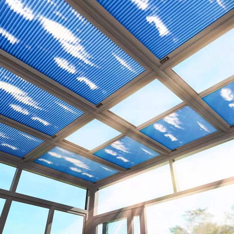 阳光房遮阳顶帘玻璃顶隔热防晒手动天棚电动全遮光天窗蜂巢帘窗帘