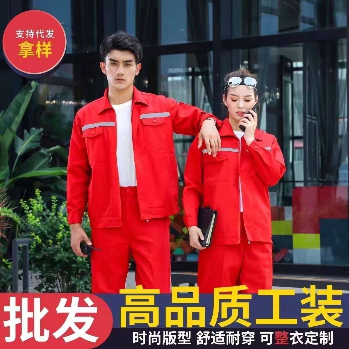 秋冬季工作服装男上衣耐磨长袖外套男女车间春秋汽修反光工装定制