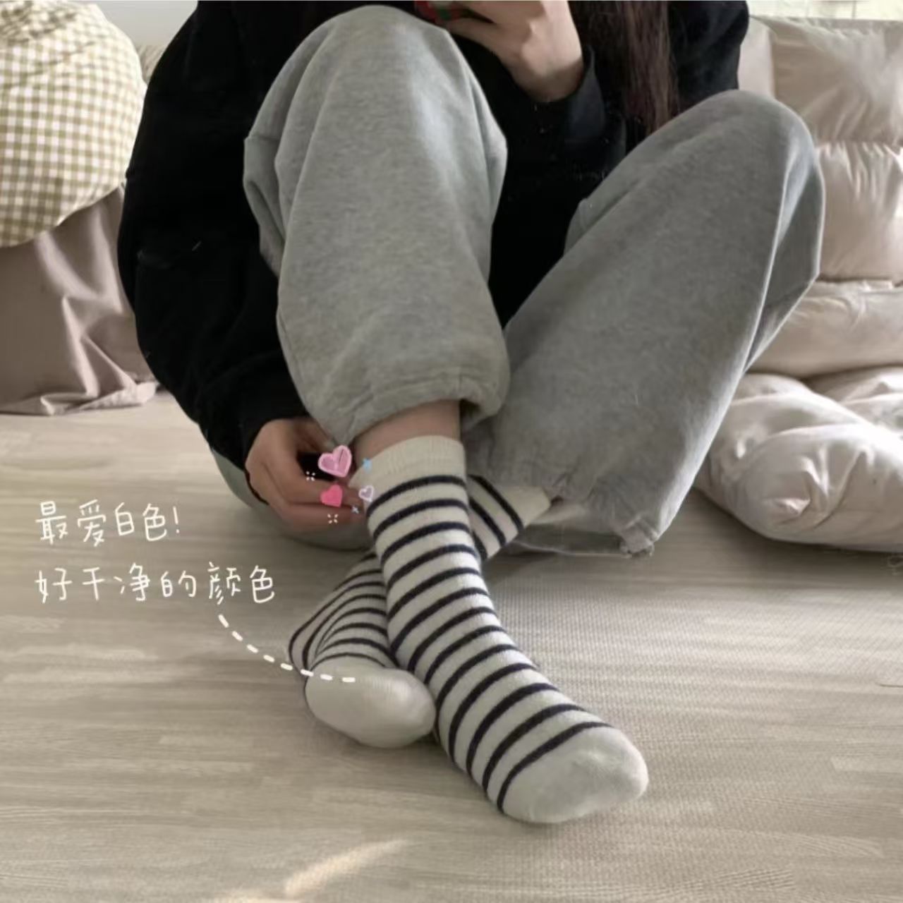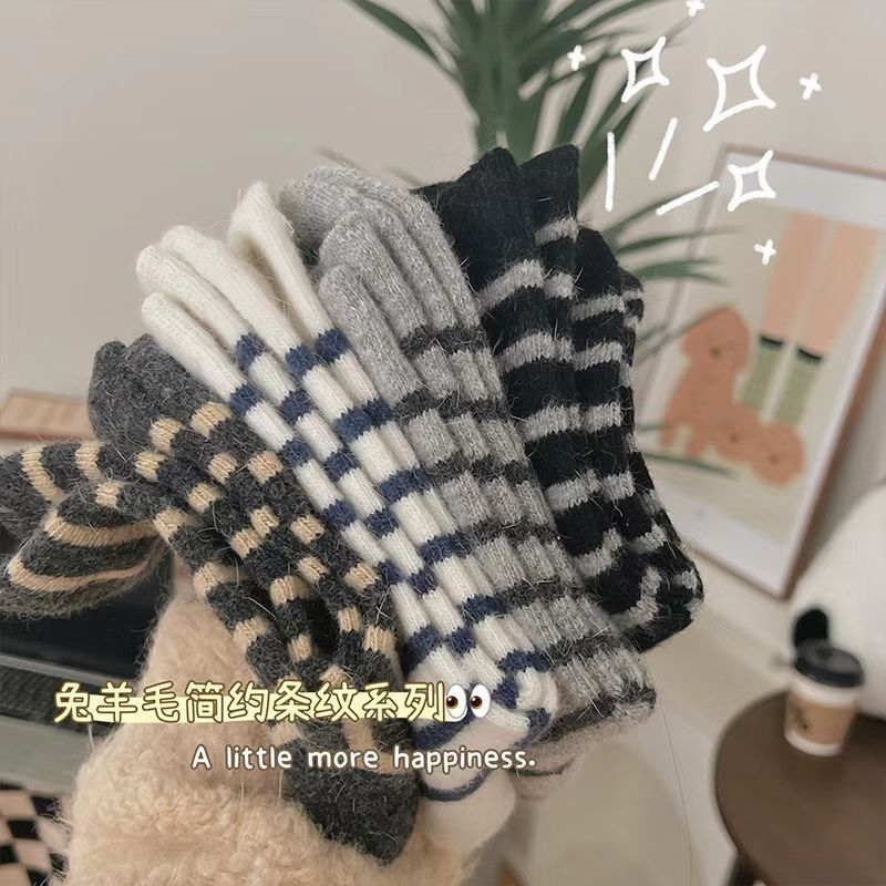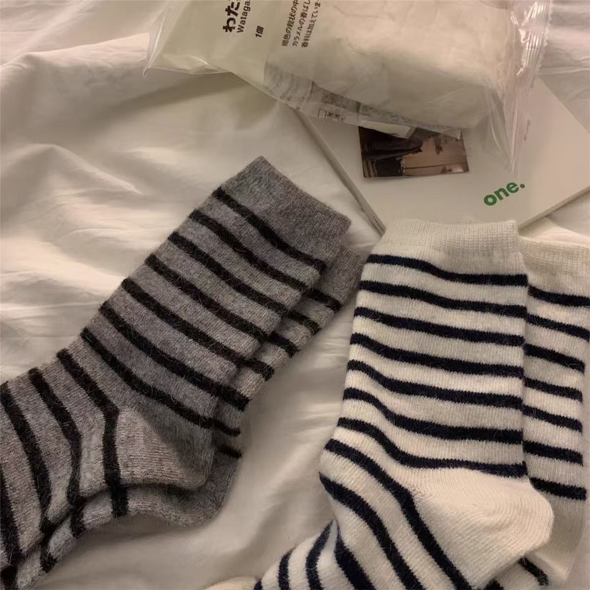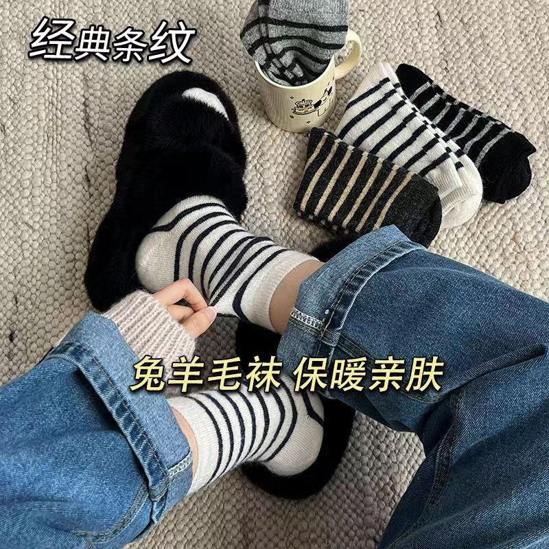 加厚兔羊毛袜子女ins潮秋冬季韩版日系条纹毛绒中筒袜堆堆袜保暖