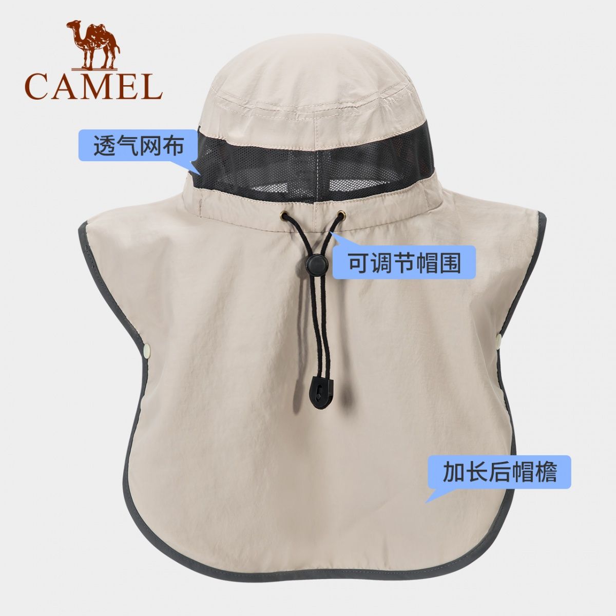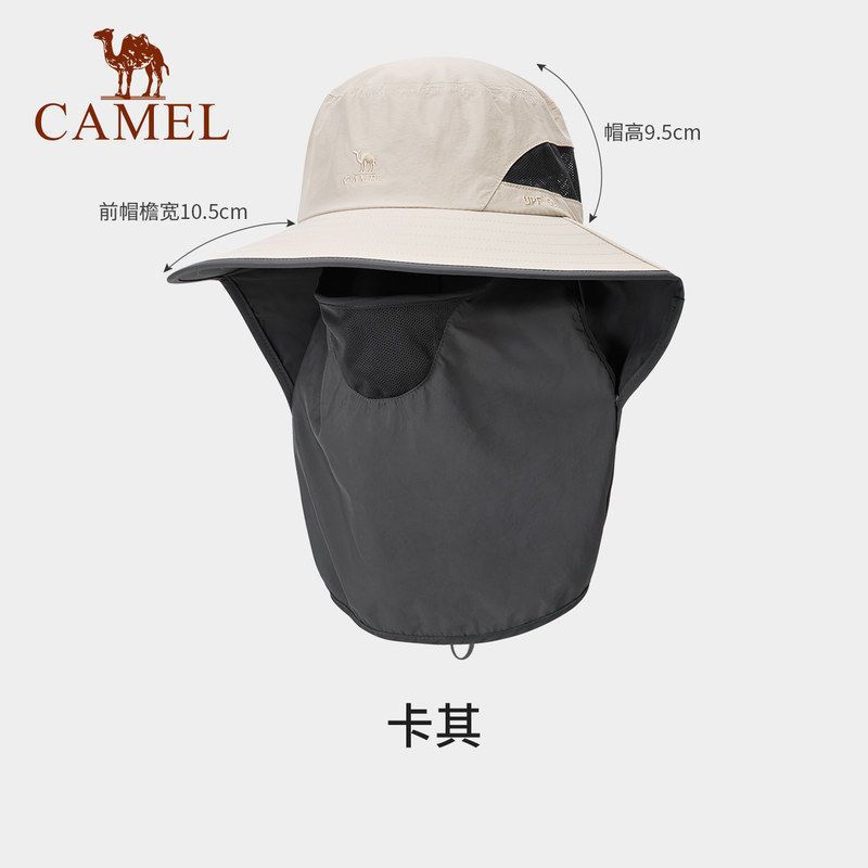 骆驼运动渔夫帽包裹式防紫外线太阳帽子登山出游三合一帽子