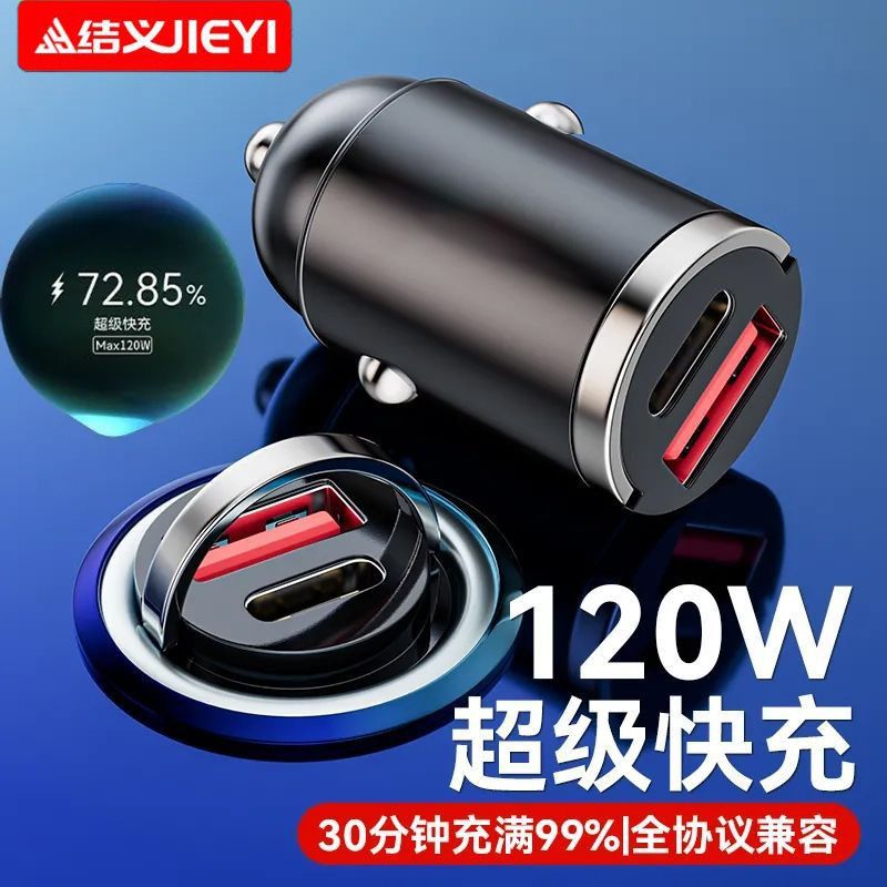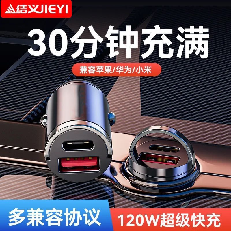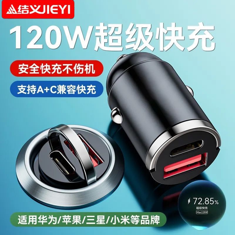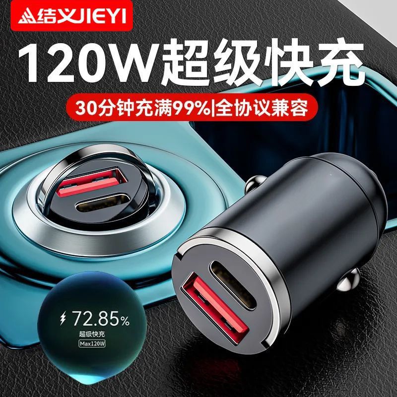 120W车充电器100W超级快充适用苹果安卓双口隐形车载车充
