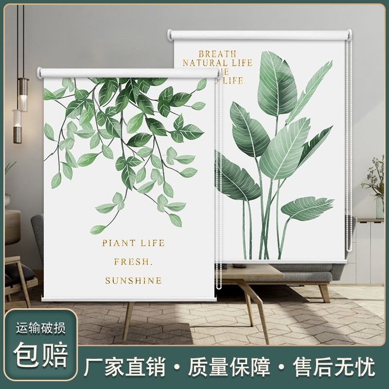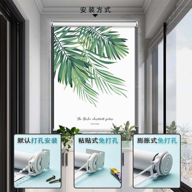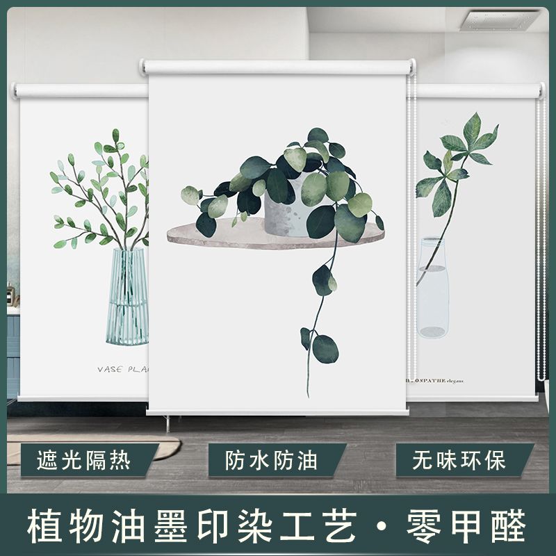 北欧简约清新卷帘免打孔卫生间防水浴室遮光厨房窗户手拉升降窗帘