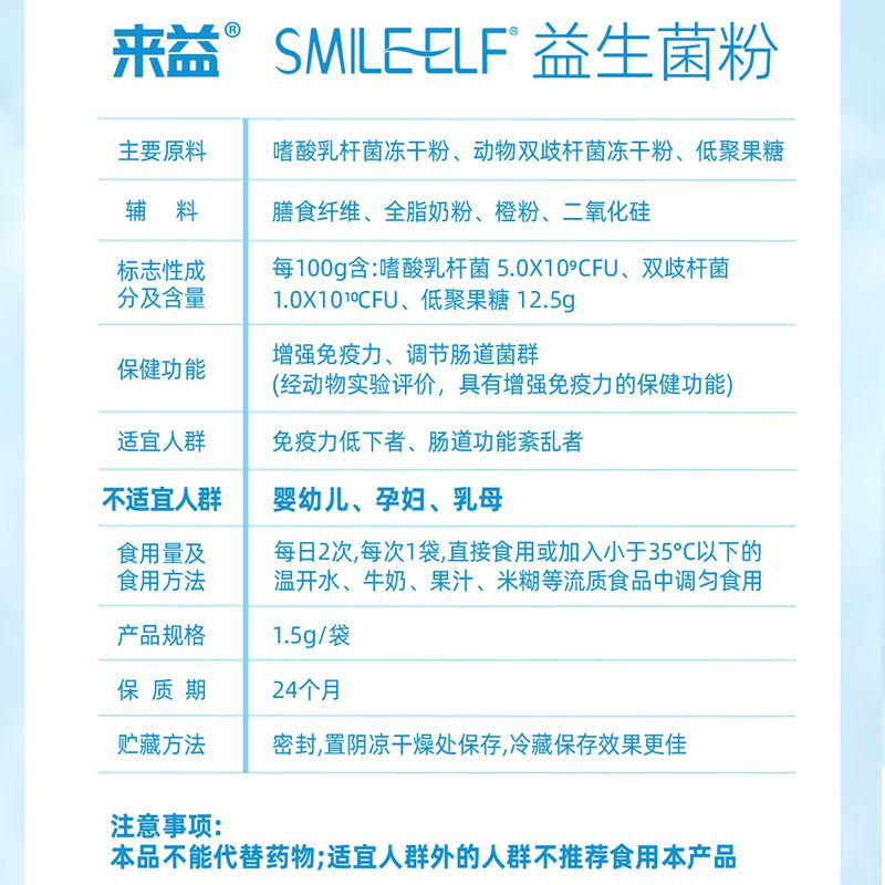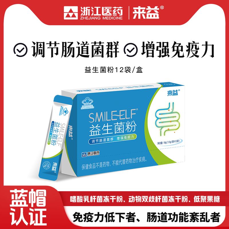 来益双菌株冻干益生菌粉12袋/盒调节肠道菌群增强免疫力成人健康