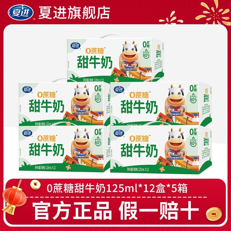 年货送礼】夏进0蔗糖甜牛奶125ml*12盒*5箱 甜奶学生 营养【10天内发货】