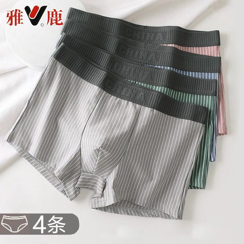 雅鹿男士大码棉款内裤短裤棉裤头平角纯色四角透气裤衩吸汗宽松版