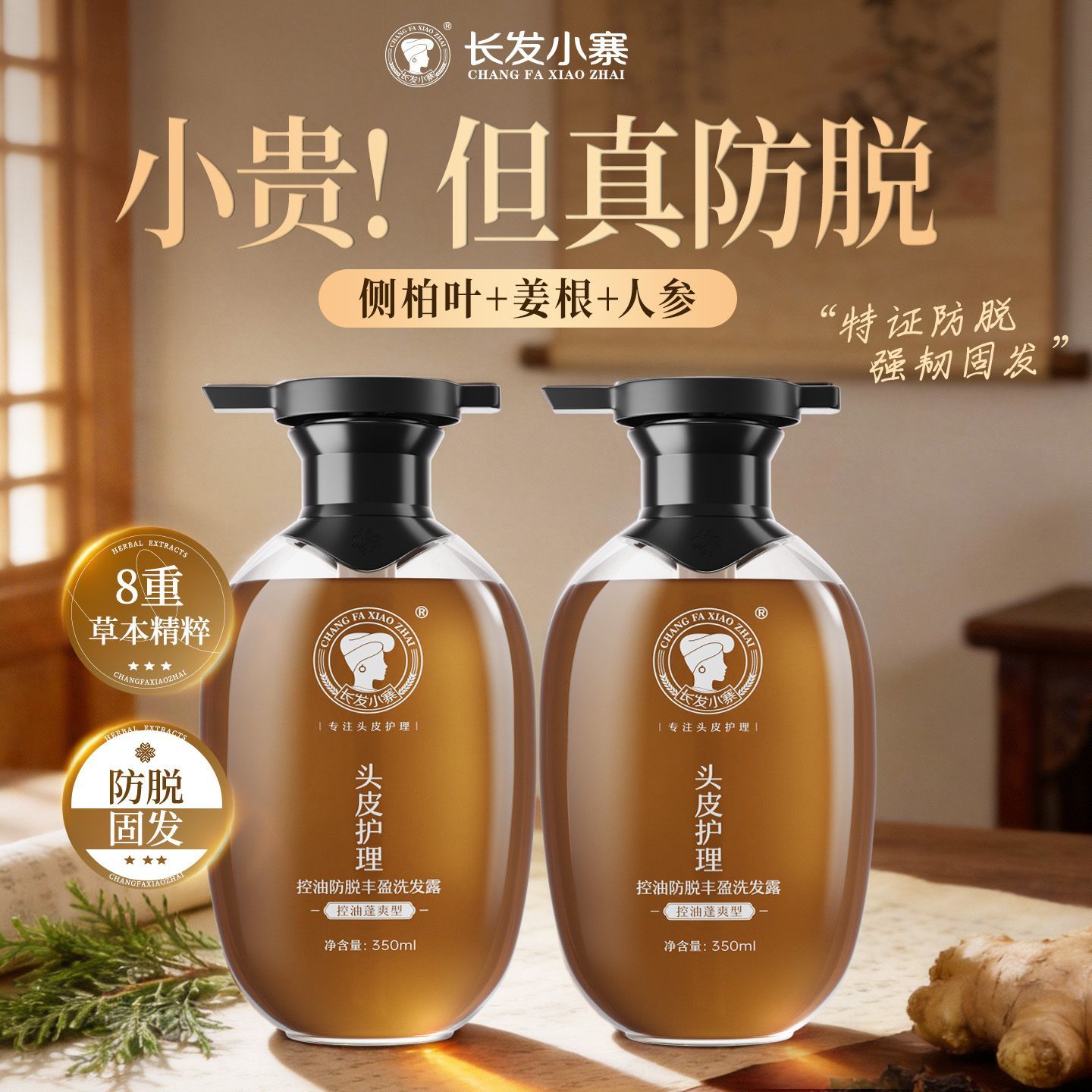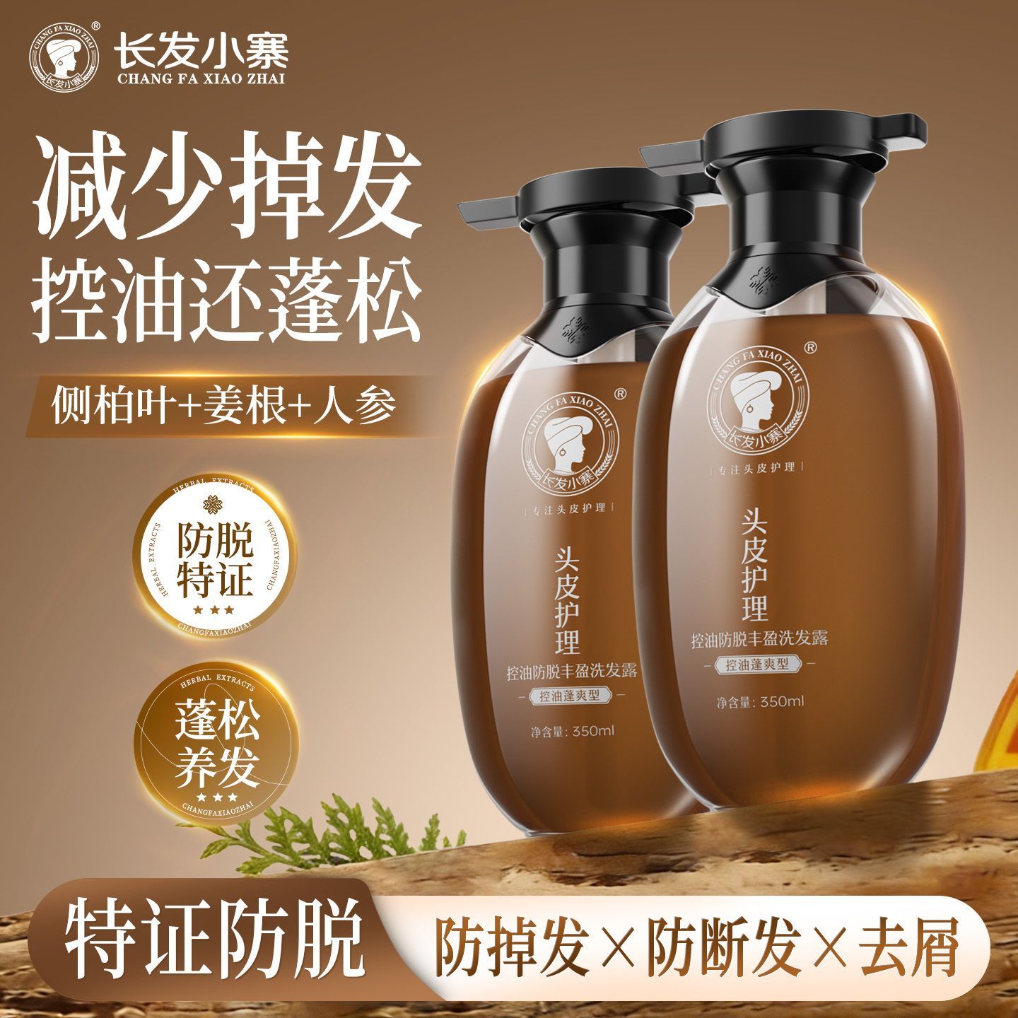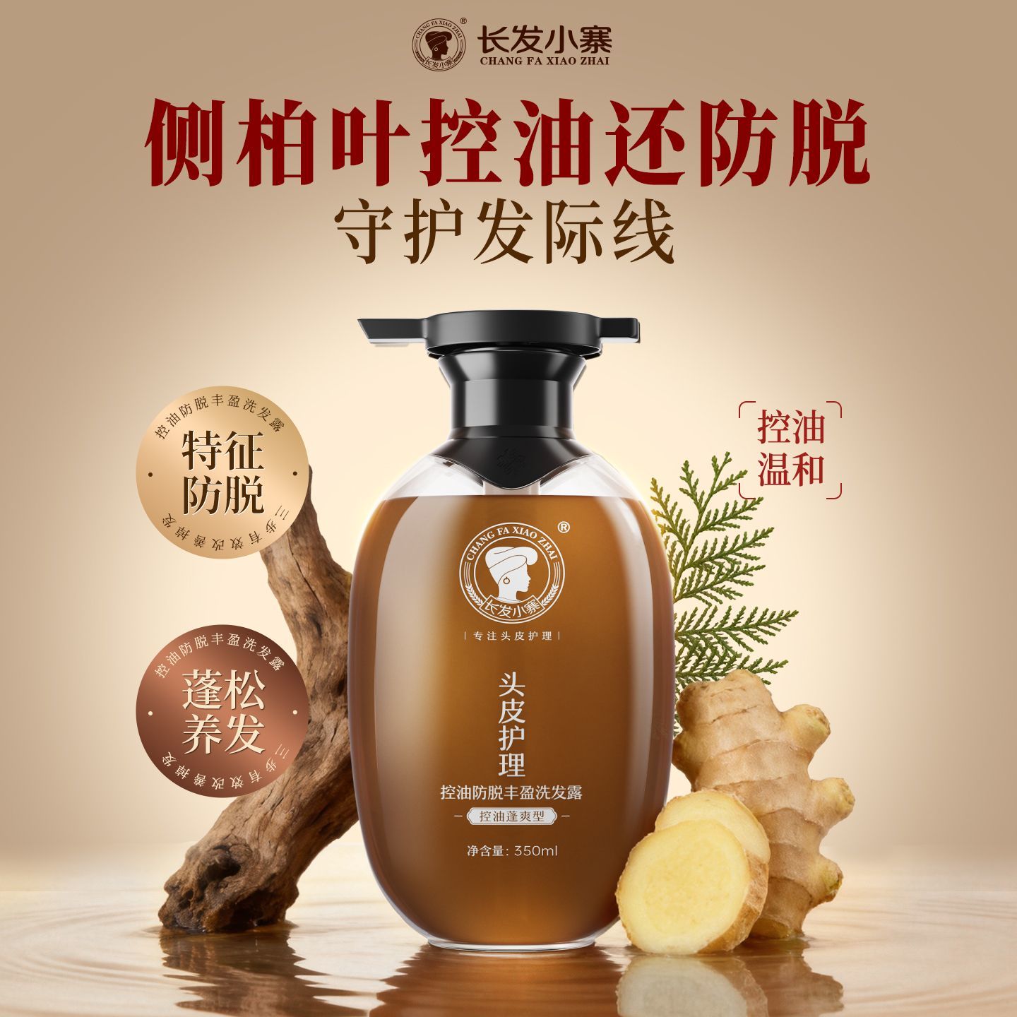 长发小寨控油防脱洗发水姜侧柏叶强根健发固发防断发控油蓬松去屑