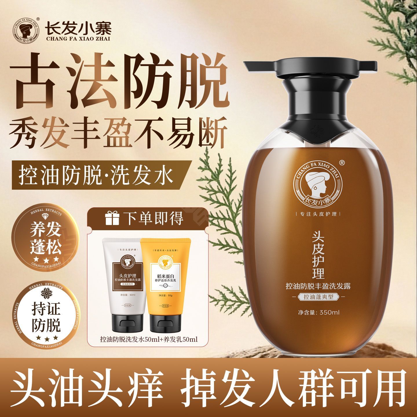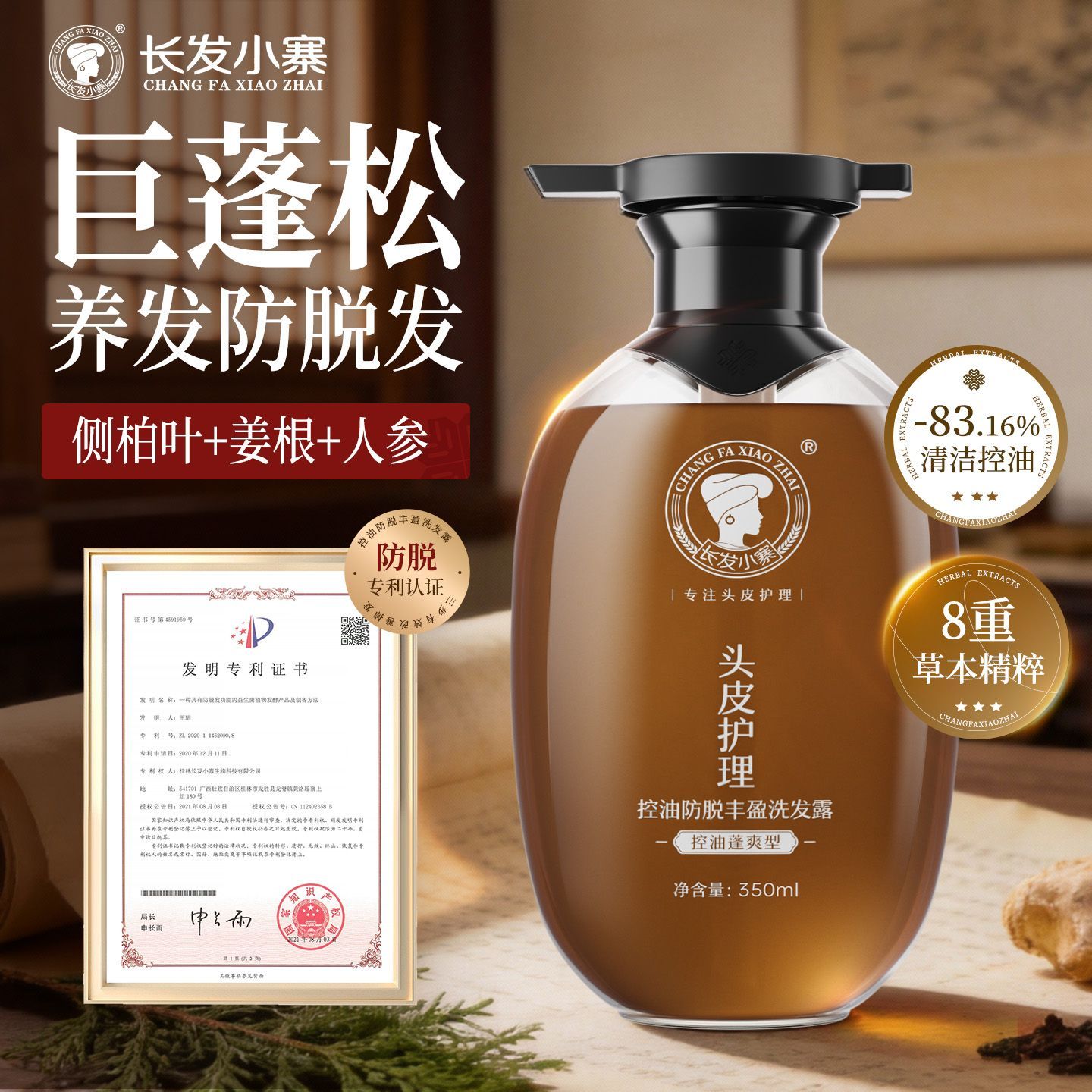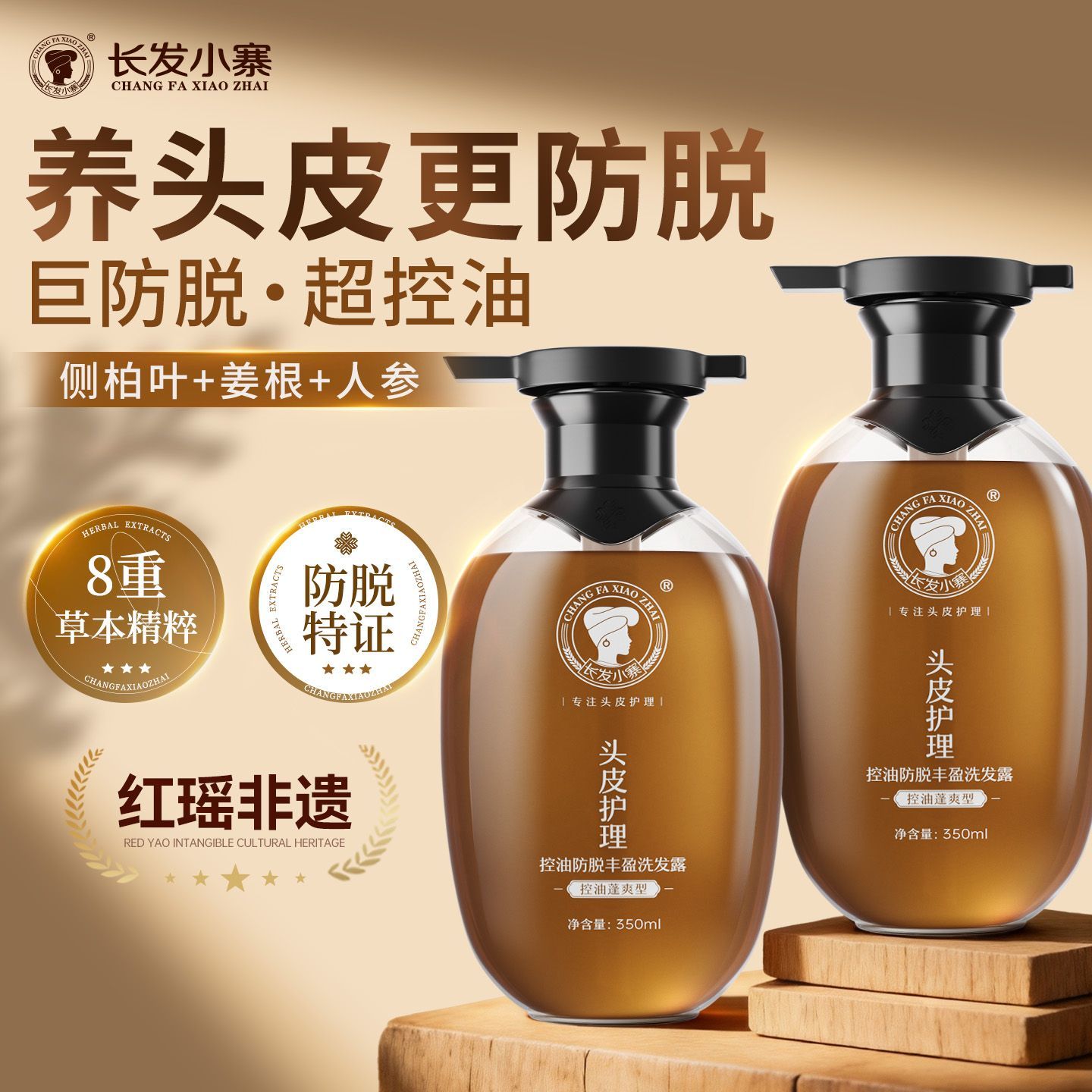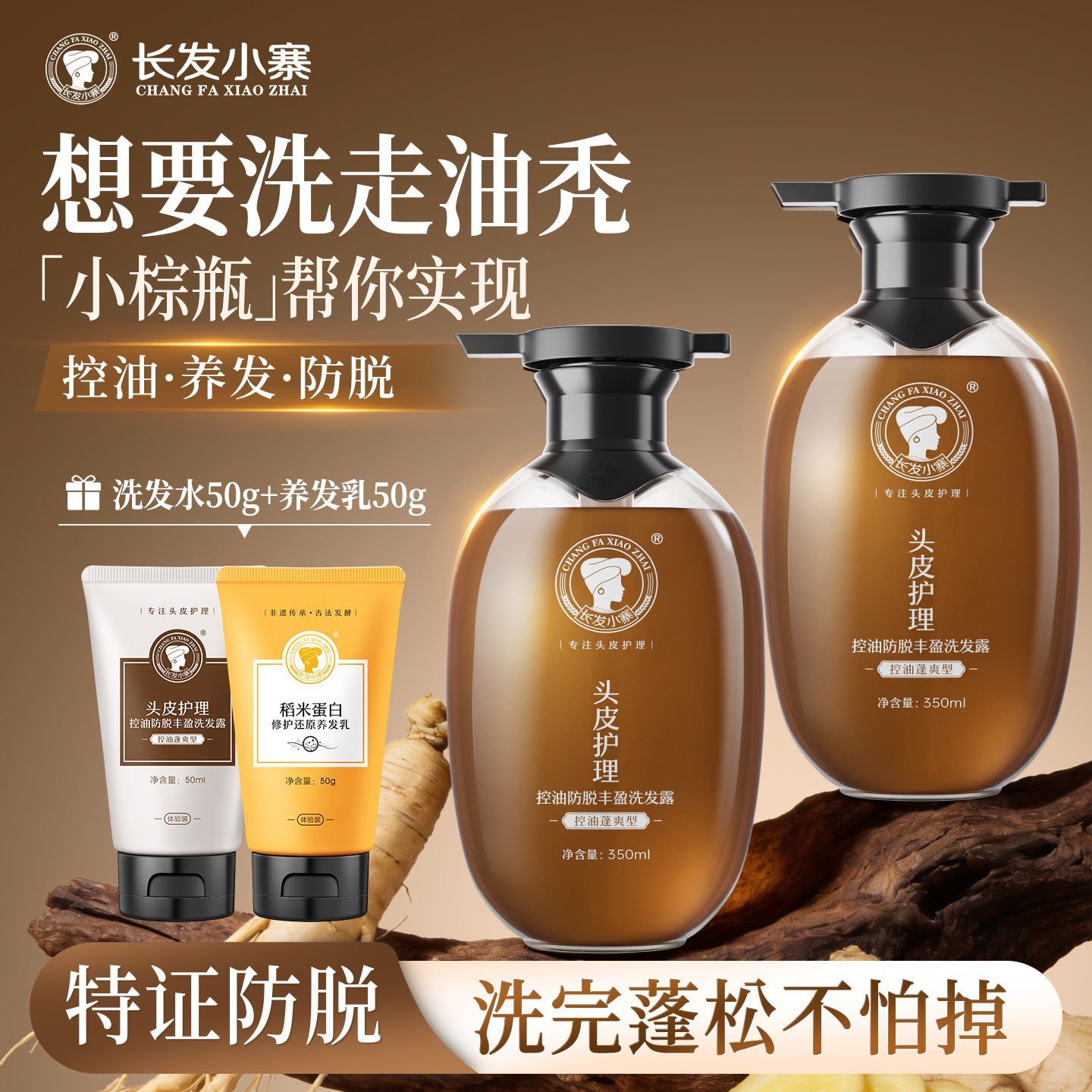 长发小寨控油防脱洗发水姜侧柏叶强根健发固发防断发控油蓬松去屑